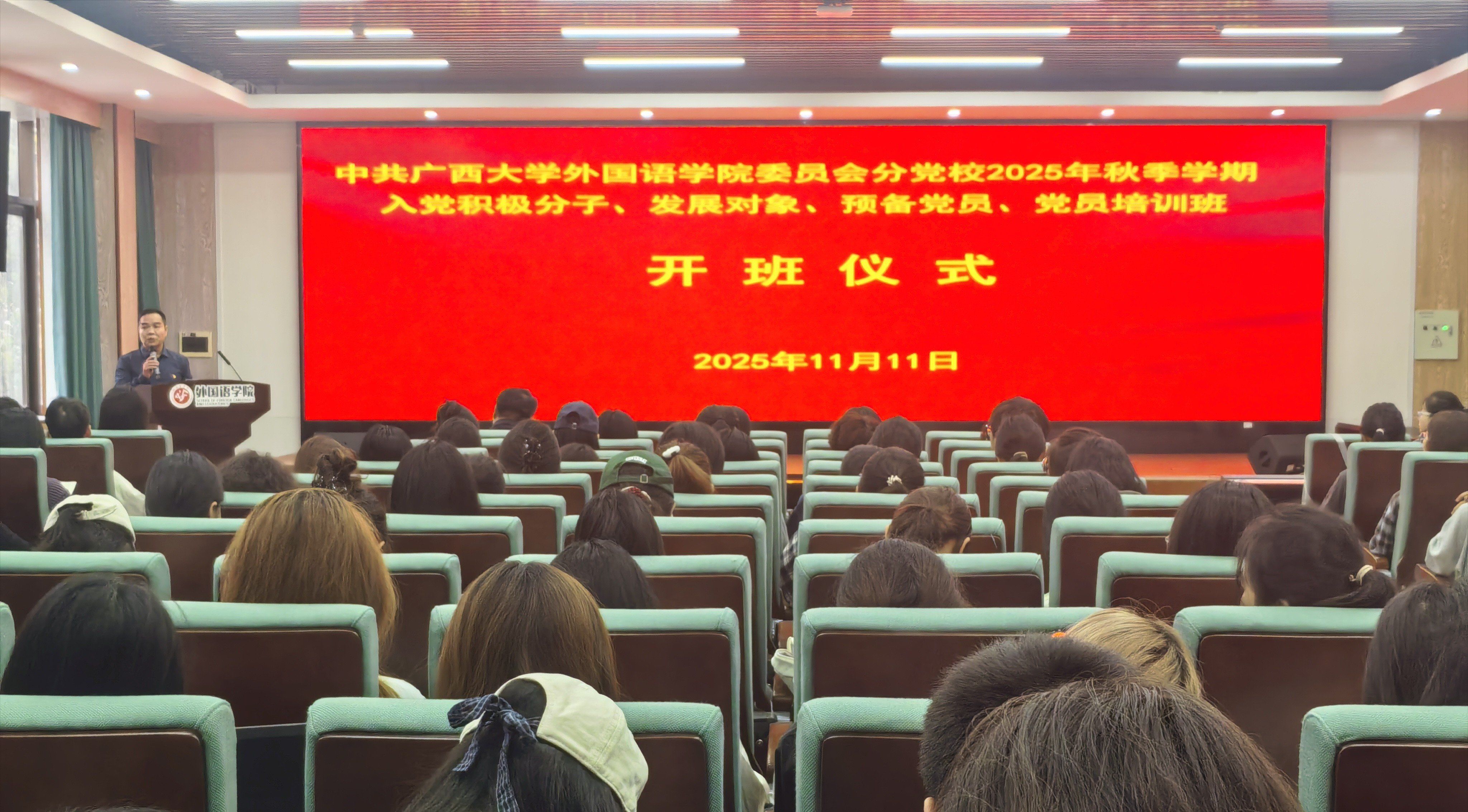 11月11日下午,ok138太阳集团古天乐党委分党校举行2025年秋季学期培训班开班仪式暨第一次党课,161名培训班学员参加开班仪式。开班仪式上,学院党委书记莫柏林围绕“我是谁”、“我要做什么”、“我要怎么做”三个核心问题,为学员们作了深刻而生动的动员讲话。他强调,学员要明晰从入党积极分子到正式党员的成长路径;要珍惜学习机会,主动接受纪律约束,以严肃认真的态度对待培训全过程;更要端正入党动机、坚定理想信念,在培养考察...