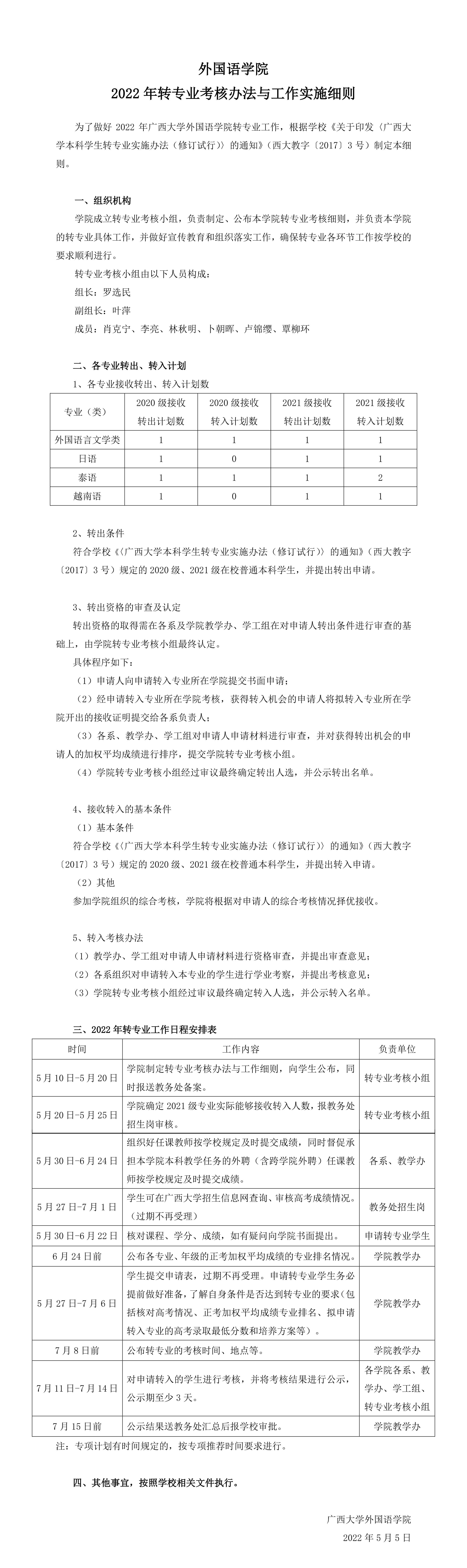 【本教文件】ok138太阳集团古天乐2022年转专业考核办法与工作实施细则