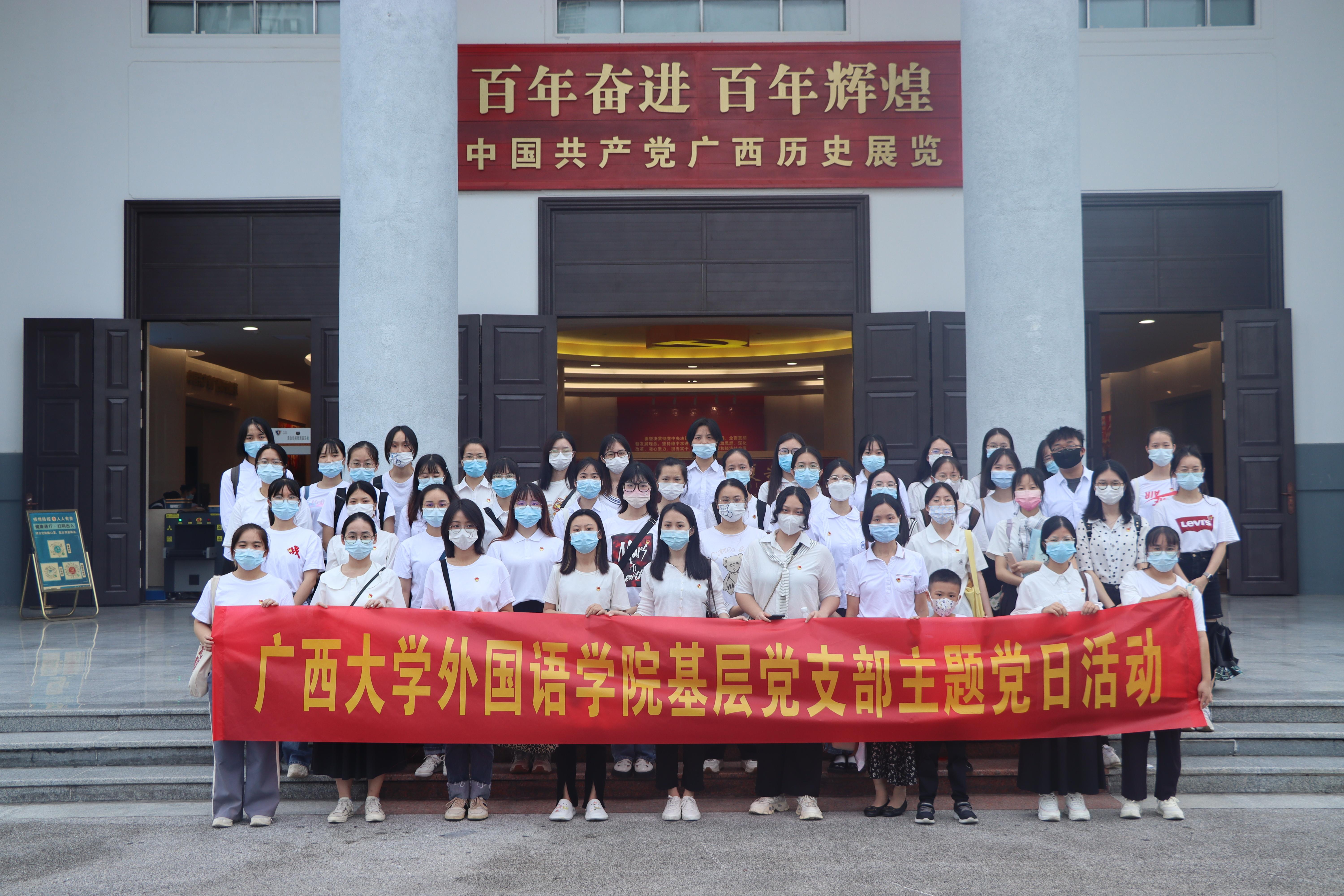 为庆祝中国共产党成立101周年,喜迎党的二十大胜利召开,7月15日下午,ok138太阳集团古天乐英语专业本科生党支部和翻译专业本科生党支部组织党员前往广西展览馆参观中国共产党广西历史展览和广西脱贫攻坚成就展。