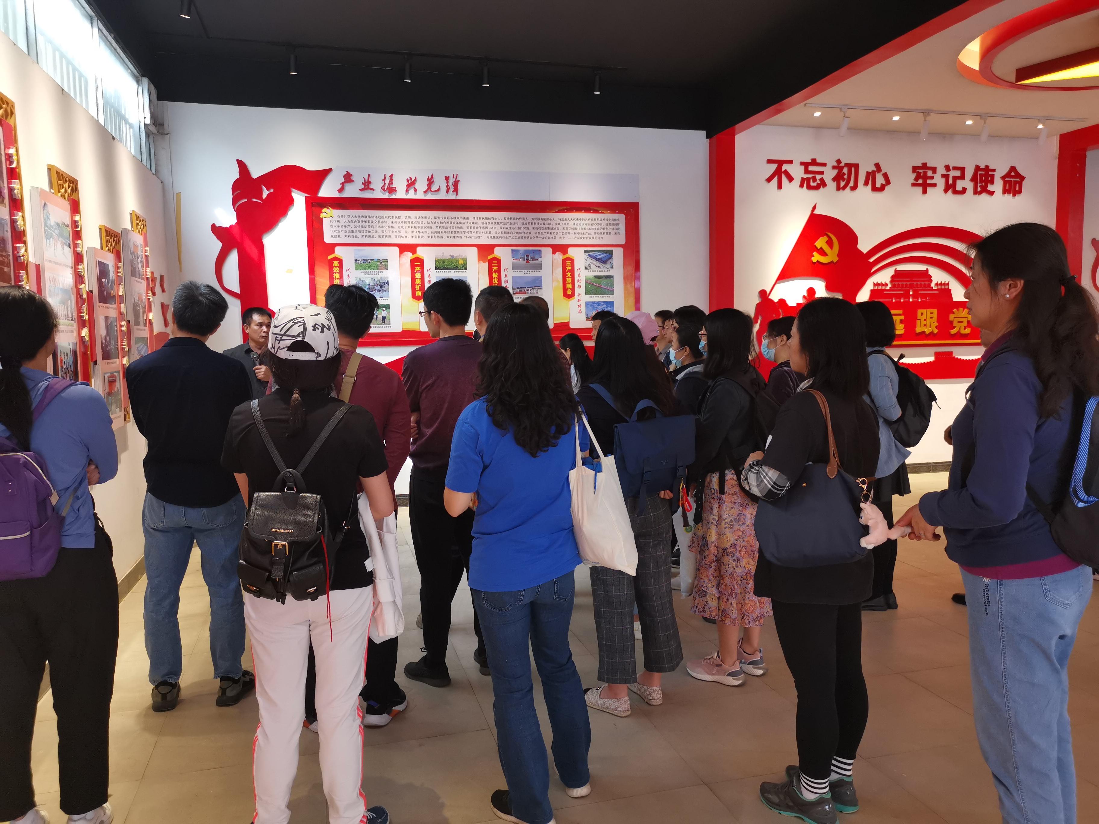 随后,老师们前往校椅镇石井村参观了石井村的乡村振兴建设。石井村党委蔡书记带大家参观了石井村的党建文化展厅,向老师们详细介绍了石井村党建引领乡村振兴建设取得的一系列成就。石井村是国家现代农业产业园和全国特色小镇的核心建设区,近年来,石井村党委以乡村振兴战略为统揽,紧盯产业发展、环境美化、乡风文明等工作,厚植优势,补齐短板,走出了一条乡村美、产业旺、农民富、治理优的乡村振兴之路。蔡书记的介绍让老师们深刻感受到石井村党委开拓进取、锐意创新的精神以及党建引领乡村振兴为石井村带来的新发展、新变化。