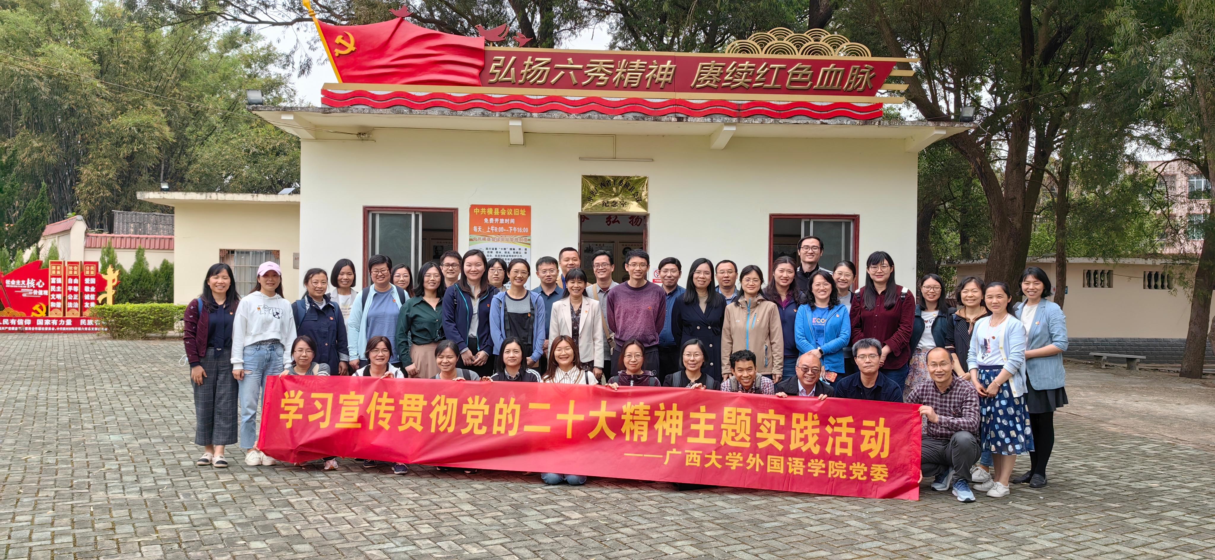 为深入学习宣传贯彻党的二十大精神,引导党员干部牢记初心使命,坚定不移忠诚拥护“两个确立”、坚决做到“两个维护”,及时将学习宣传贯彻党的二十大精神成果转化为实践成果、发展成果,推动学院改革发展。3月18日上午,ok138太阳集团古天乐全体教师党员在党委副书记肖克宁带领下前往横州市陶圩镇六秀村及校椅镇石井村开展主题实践活动。