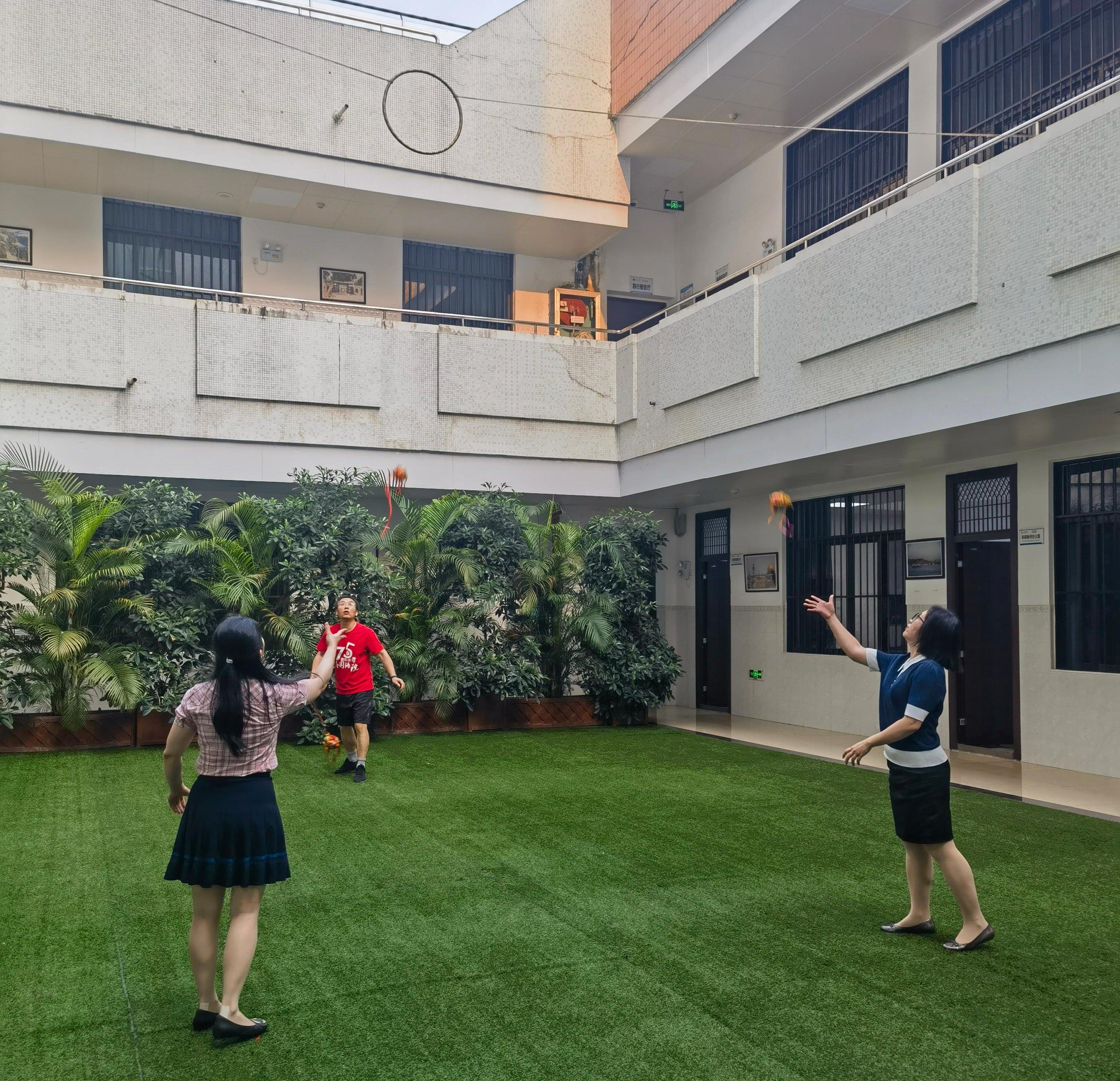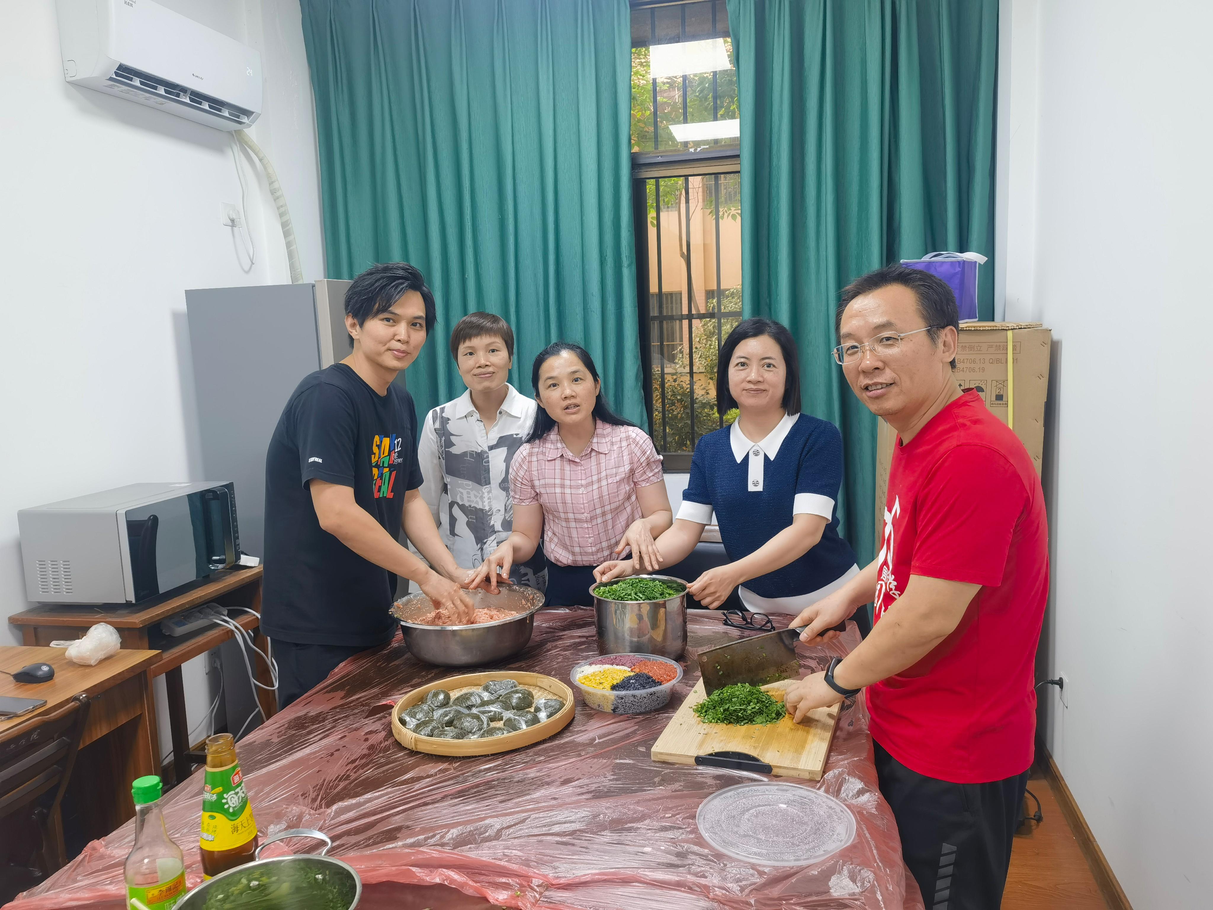 行政教工党支部党员体验了壮族特色体育活动——抛绣球,并学做五色糯米饭、艾草糍粑等民族美食。