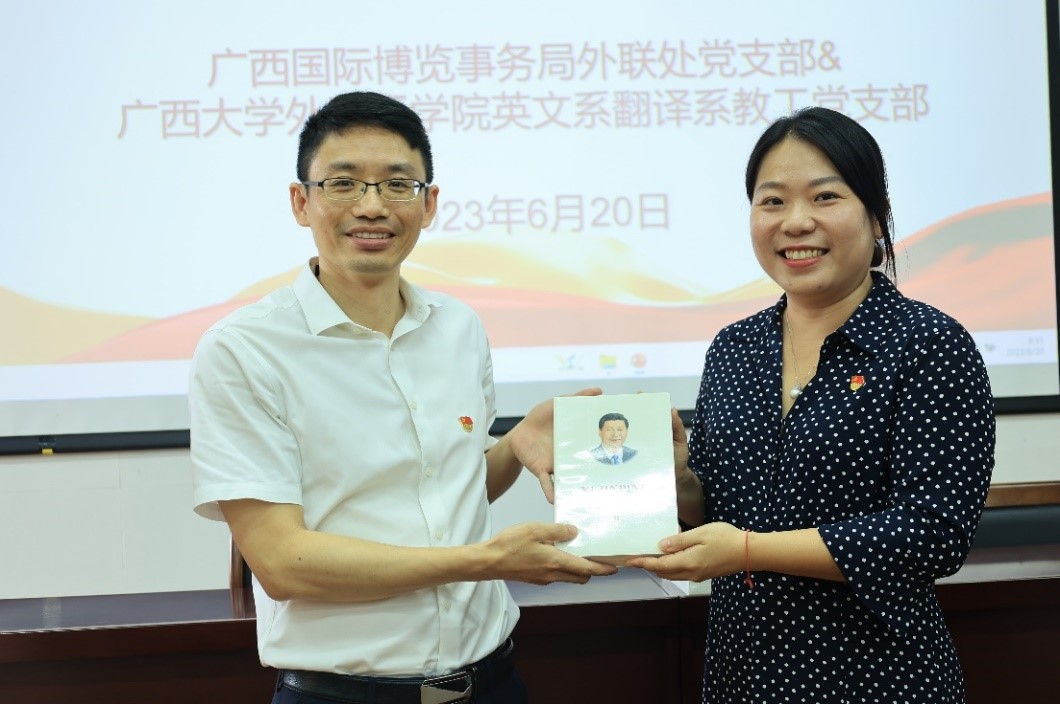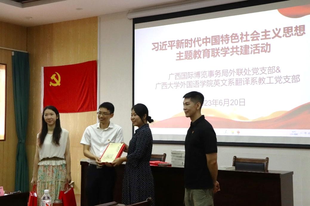 ——ok138太阳集团古天乐英文系翻译系教工党支部与广西国际博览事务局外联处党支部举行联学共建活动