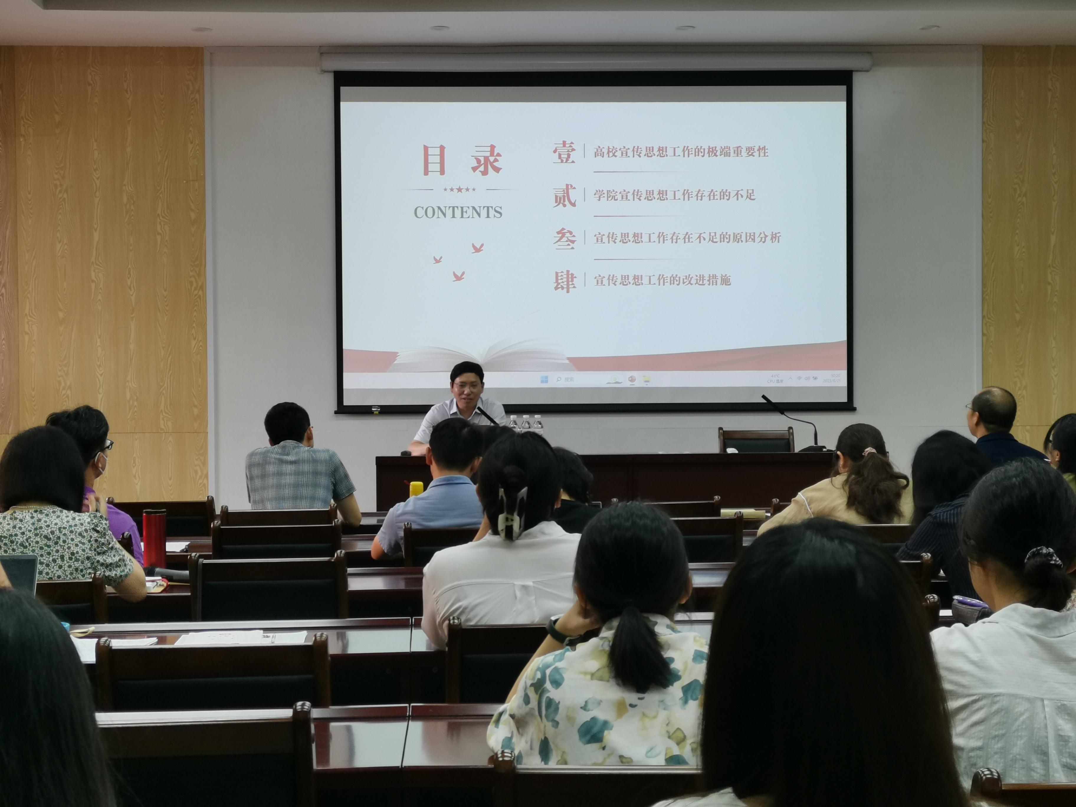 蒋敬诚老师主讲党课题为《积极创新宣传思想工作 弘扬学院发展正能量》,内容包括高校宣传思想工作的极端重要性、学院宣传思想工作存在的不足、宣传思想工作存在不足的原因分析、宣传思想工作的改进措施等。蒋敬诚老师指出,为谁培养人、培养什么人、怎样培养人,始终是教育的根本问题。认真学习贯彻习近平总书记关于宣传思想工作的重要论述,是新时代的教育事业更好担负起立德树人根本任务的内在要求和重要前提。