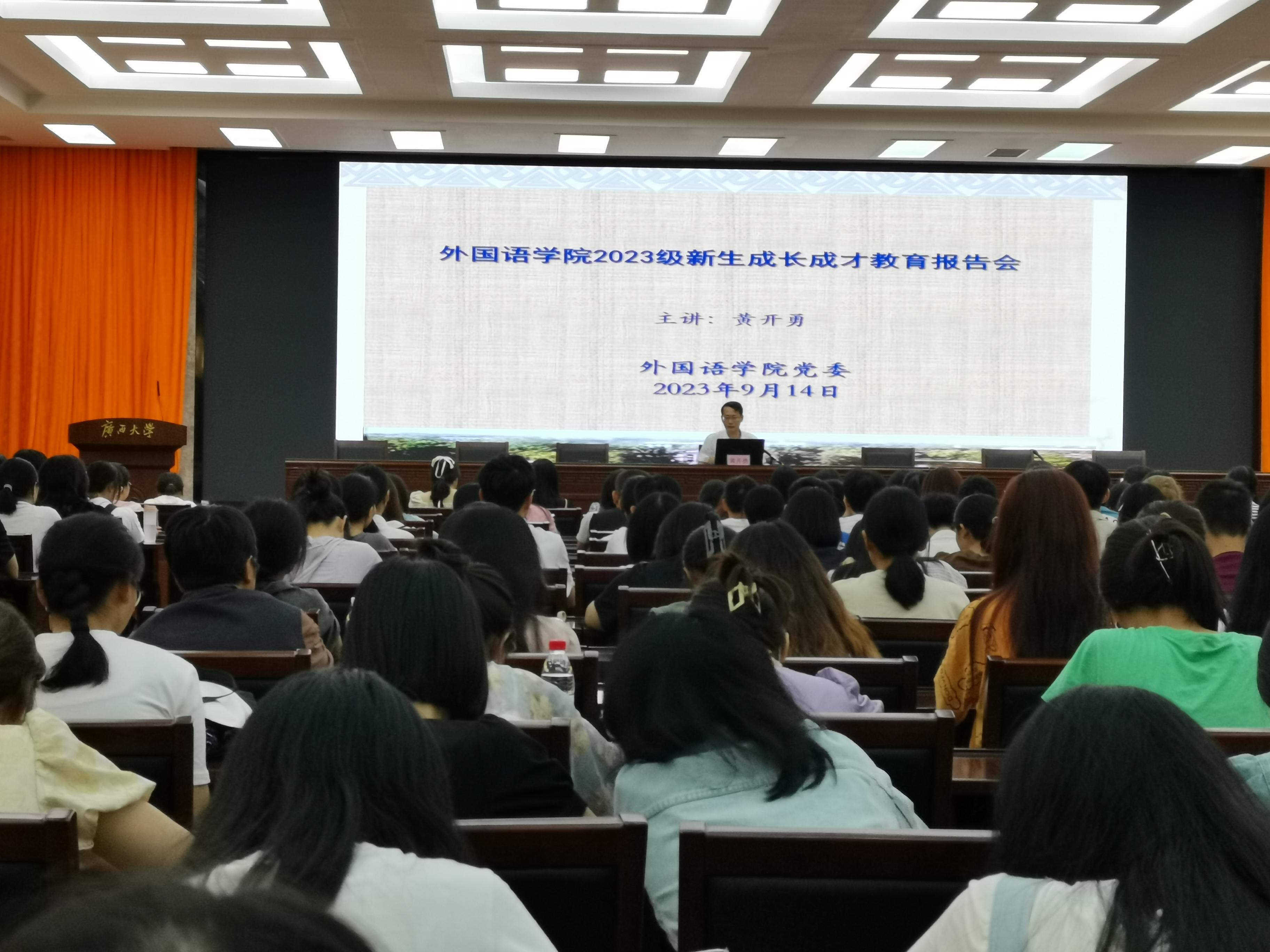 9月16日,ok138太阳集团古天乐党委在君武楼玉林厅举办2023级新生成长成才报告会。报告会由学院党委黄开勇书记主讲,肖克宁副书记主持报告会,2023级全体新生参加报告会。