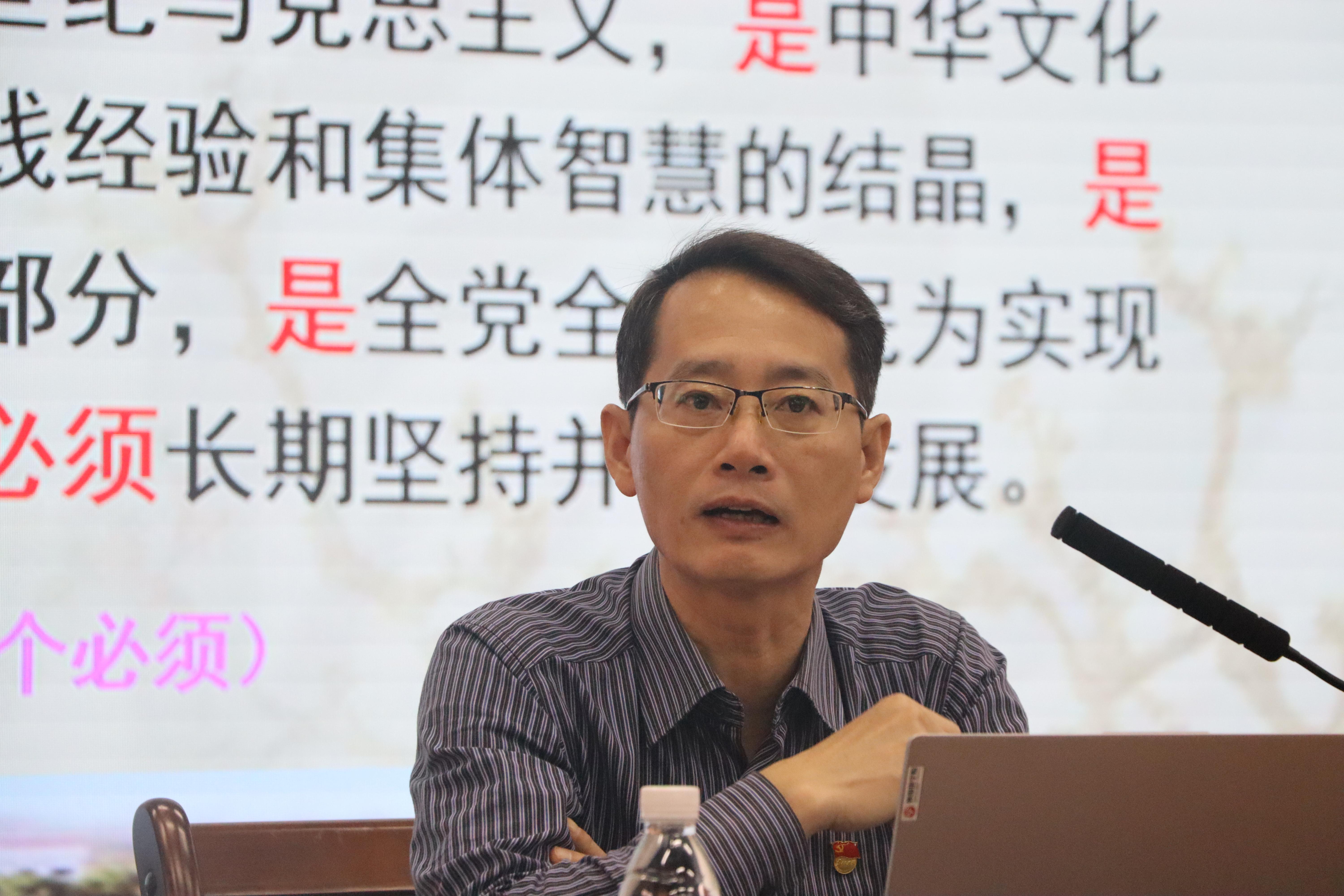 开班仪式结束后黄开勇书记以“全面深入学习贯彻习近平新时代中国特色社会主义思想”为题给全体学员上本期培训班的第一次党课。黄书记指出,习近平新时代中国特色社会主义思想是科学理论和行动指南,我们要全面学习和贯彻习近平新时代中国特色社会主义思想,只有坚持不懈地用习近平新时代中国特色社会主义思想凝心铸魂,我们党才能团结带领全国人民全面建成社会主义现代化强国,以中国式现代化全面推进中华民族伟大复兴。