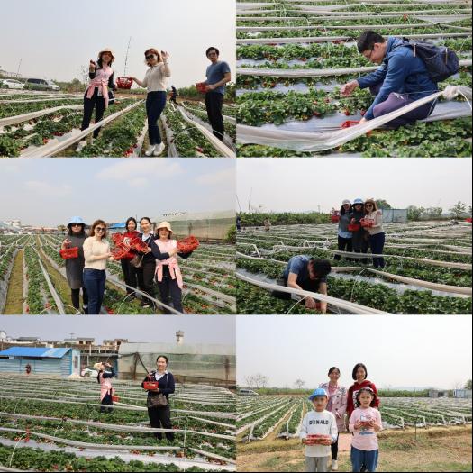 本次工会活动借助国际三八妇女节的东风开展了形式多样的趣味竞技项目。在踢毽子的比赛中,陈副院长亲自上阵,与教职工们和乐融融。在动感十足的比赛后,一场百科知识问答将全场的气氛推上了高潮。虽然涵括了包罗万象的百科知识,教职工们互相比拼、跃跃欲试、现场气氛异常火爆。本次工会活动在一片飘着奶香味的草莓园里结束了,教职工们在清新的草莓园里尽情品尝着"乡村振兴"的鲜甜成果,在蓝天白云下留下了美好的回忆,向着美好的未来奋跃而上。