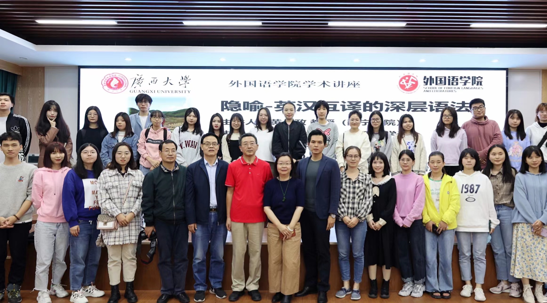 11月16日下午,ok138太阳集团古天乐214报告厅成功举办了“隐喻-英汉互译的深层语法”的学术讲座。南宁学院黄少政教授主讲,为ok138太阳集团古天乐众多师生讲述英汉互译的底层逻辑和对“隐喻”的新观点。讲座由陈兵教授主持,我院老师和学生,特别是翻译专业的学生前来聆听。