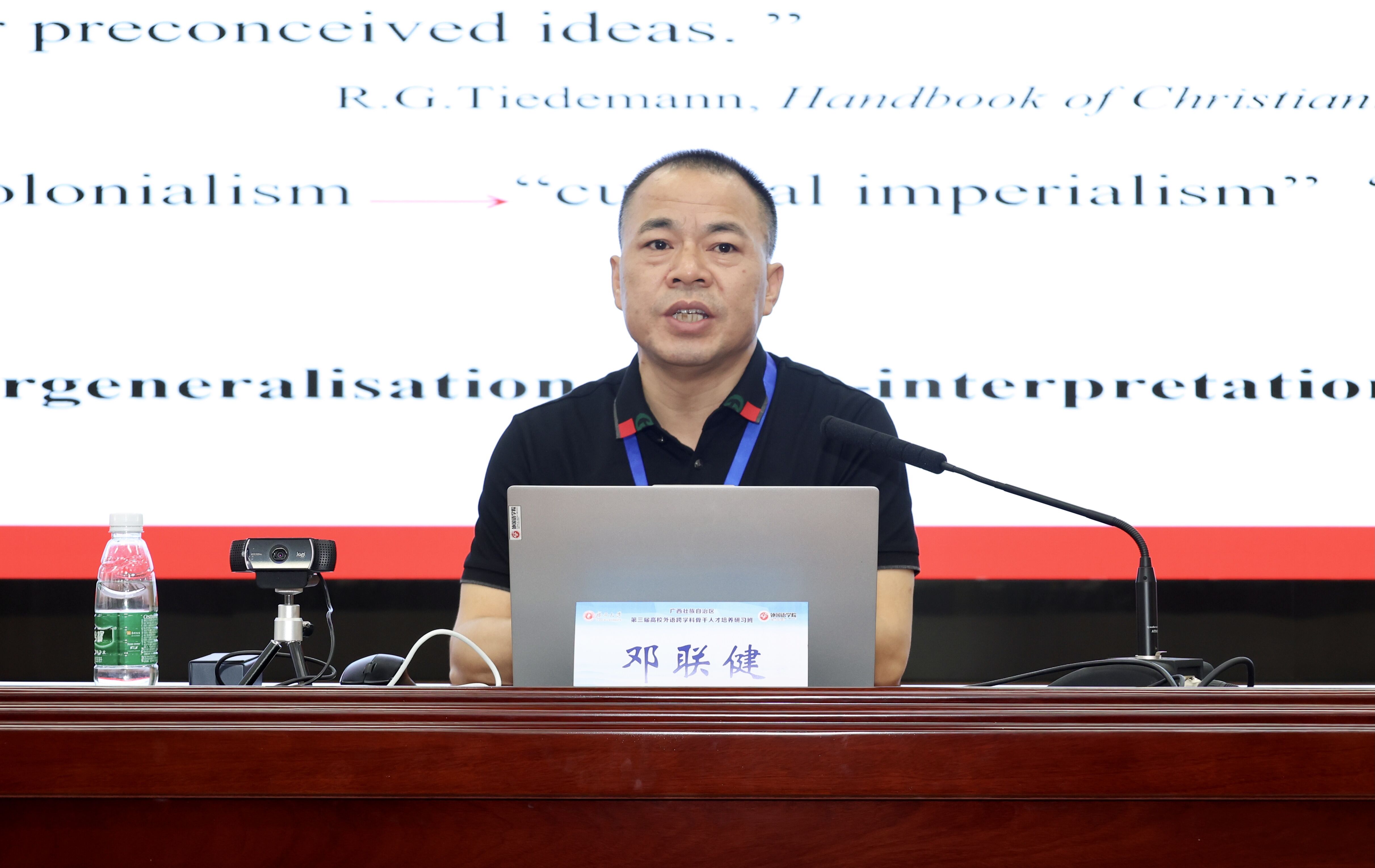 南宁师范大学ok138太阳集团古天乐院长李晓教授就“深度学习视域下大学英语教学的多维研究”这一题目进行了发言。在阐明“深度学习”内涵及其六种能力的基础上,李教授从教学目标、教学活动和课堂话语三个维度对大学英语的深度学习作了数据分析。据李教授所展示数据显示,深度学习能力在教学目标的设定中向更加多元的方向发展;教学活动中,阅读课高阶思维“评价”、“创造”类活动及听力课“分析”类活动逐渐增多;教师课堂话语与学生课堂话语的深度学习数据之间呈显著正相关关系。李教授强调,在大学英语四十年发展的历史转折点上,教师要致力于打造金课,淘汰水课,并推动课程思政融入大学英语课堂。