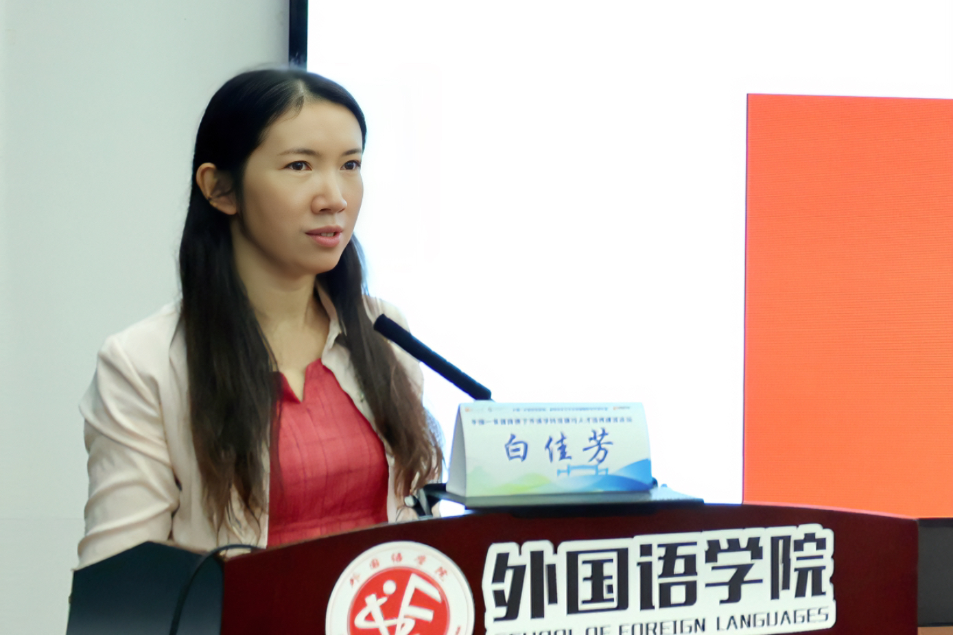 接下来,上海外国语大学洪化清教授就“语言数据驱动的教育数字化转型” 发表主旨演讲,由ok138cn太阳集团529沈莹教授主持。谈及语言的数字化潮流,洪教授表示,实现质量更高的语言教育,需要“逆流而行”,增强师生间的“互动式体验”,而不能一味地依赖科技。唯有给师生的交流让步,才可能更好践行语言的人文属性。