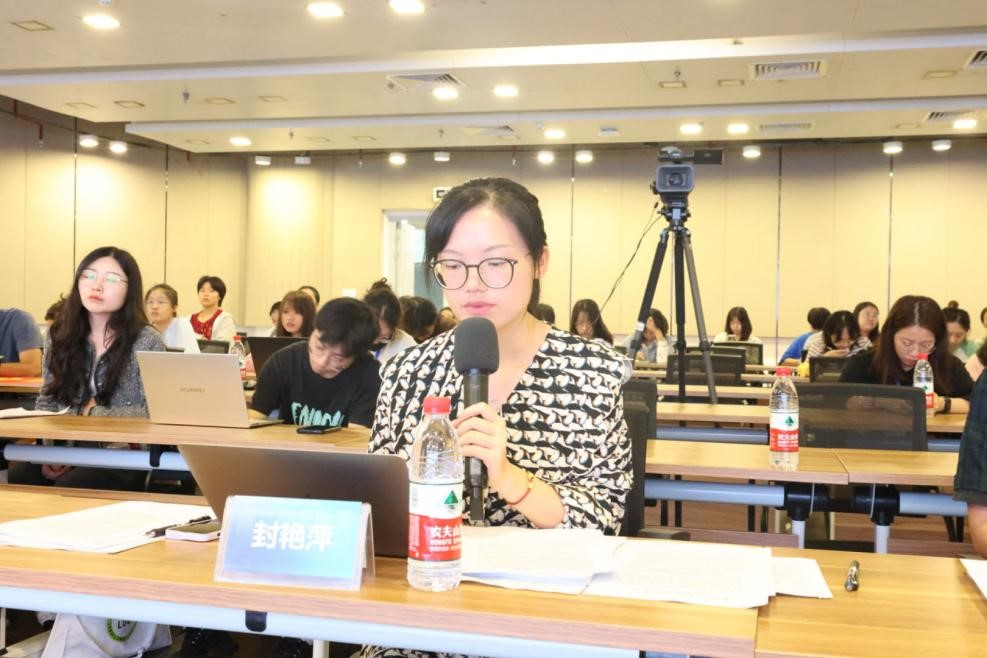 来自各高校不同学院的研究生以人工智能发展下的人文反思、马克思主义传播、现当代文学研究等不同主题进行学术汇报,清华大学文艺学博士、ok138cn太阳集团529文学院预聘副教授苏林与ok138cn太阳集团529马克思主义学院封艳萍两位专家老师从论文的跨学科程度、成果创新性和学术水平等方面进行点评。其中,我院唐诗婷同学在其论文中从多个角度讨论译者如何通过翻译修辞寻求读者认同,两位专家老师对其汇报表达赞赏,认为其论文结构清晰、内容详实、学术价值较高。