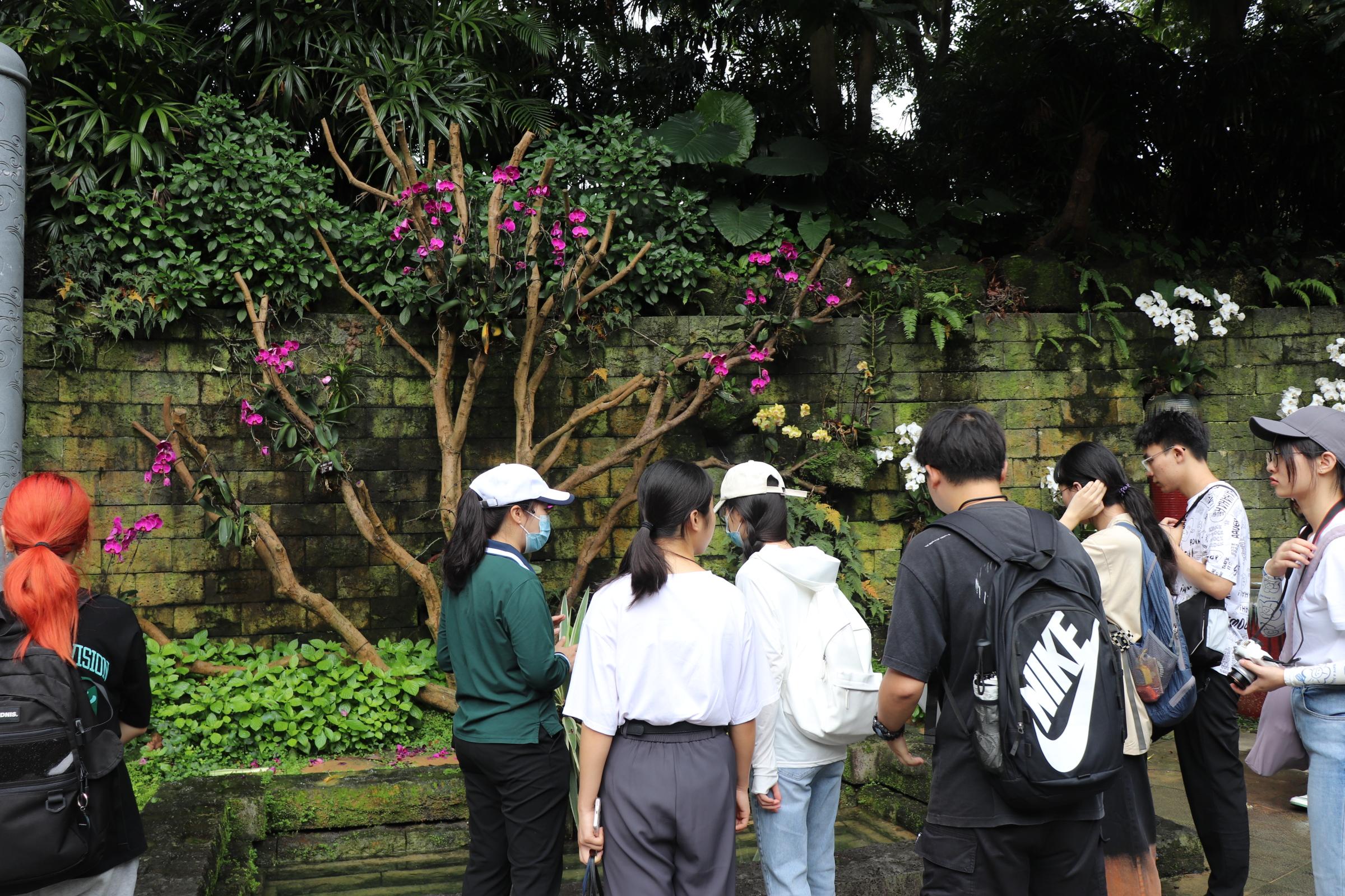 学院们参观猪笼草、芭蕉等亚热带、热带植物