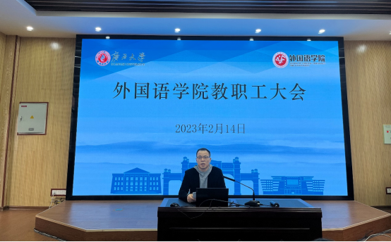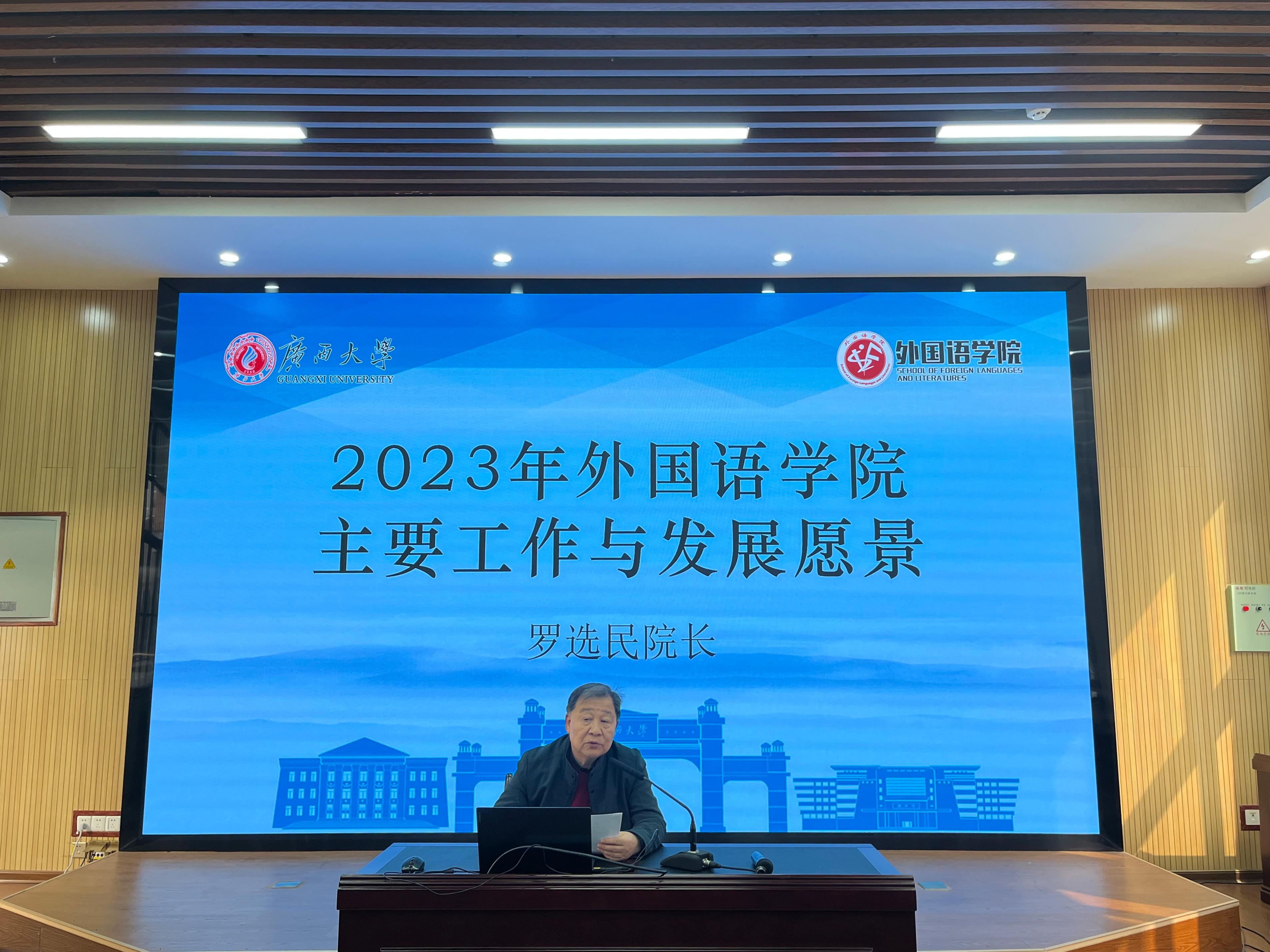 首先,罗选民院长作了关于2023年ok138太阳集团古天乐主要工作与发展愿景的主题发言。罗院长强调了四点工作:一是精准发力,做好本科教育教学审核评估工作;二是全力冲锋学院博士点申报工作,做到“心往一处想,劲往一处使”;三是强调工作纪律和工作质量的落地;四是积极汲取职称评定工作的经验与教训。