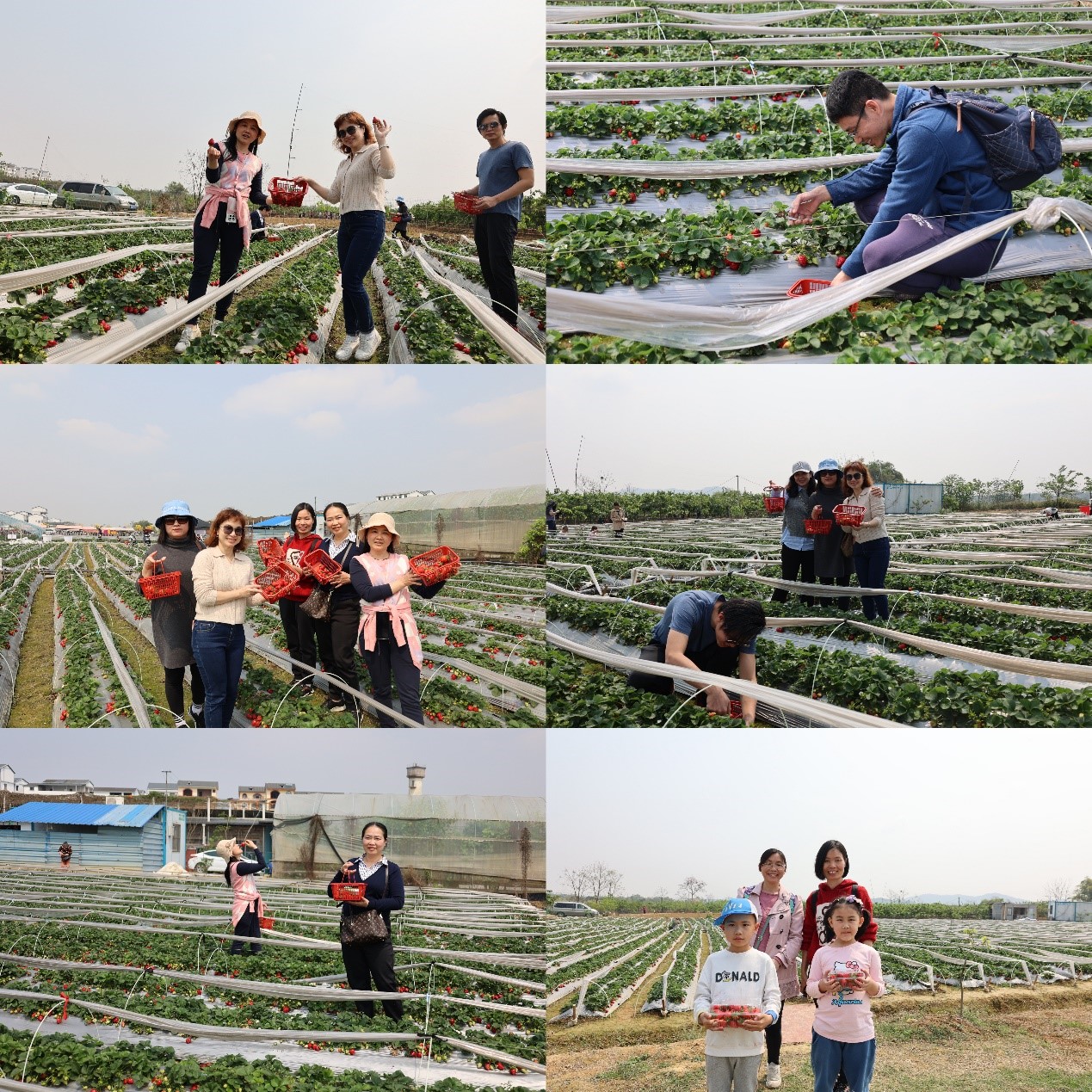 本次工会活动借助国际三八妇女节的东风开展了形式多样的趣味竞技项目。在踢毽子的比赛中,陈副院长亲自上阵,与教职工们和乐融融。在动感十足的比赛后,一场百科知识问答将全场的气氛推上了高潮。虽然涵括了包罗万象的百科知识,教职工们互相比拼、跃跃欲试、现场气氛异常火爆。本次工会活动在一片飘着奶香味的草莓园里结束了,教职工们在清新的草莓园里尽情品尝着“乡村振兴”的鲜甜成果,在蓝天白云下留下了美好的回忆,向着美好的未来奋跃而上。