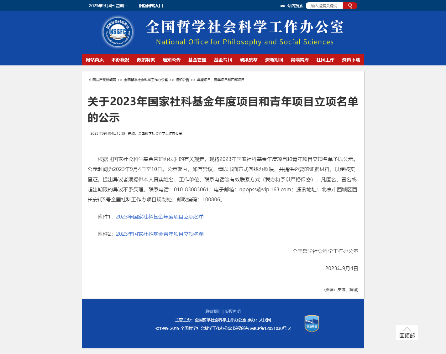 公示网站:http://www.nopss.gov.cn/n1/2023/0904/c431027-40070347.html