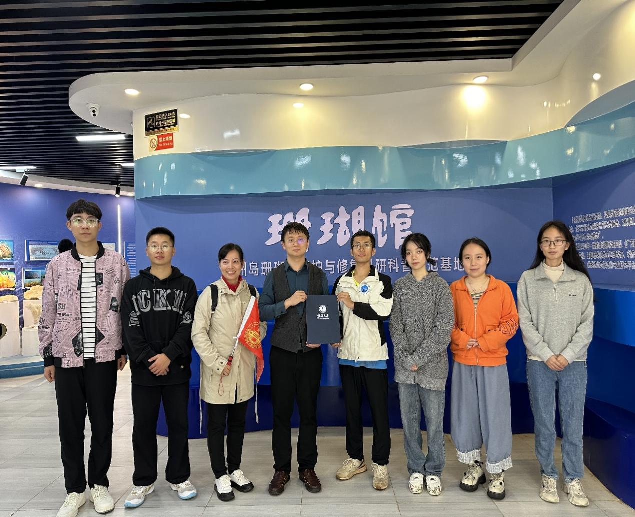 参观结束后,ok138太阳集团古天乐团委书记陈星宇老师,汇学班班主任苏文采老师代表ok138太阳集团古天乐,向涠洲岛珊瑚礁保护与修复科研科普示范基地赠送了珊瑚馆科普讲解稿的英文译本。该译本是在班主任苏文采老师的悉心指导和严格审校之下,由汇学班学员们反复打磨而成,另配有学员录制的英文版讲解音频。珊瑚馆作为宣传科普珊瑚知识的前哨阵地,吸引着大量来自海内外的游客,馆内的许多展板、标识等均为中英双语。讲解稿的翻译作为本次语言实习的重要成果之一,让汇学班学员得以运用所学专业,让理论与实践相接轨,将知识服务于社会,为广西的海洋保护科普宣传工作尽自己的一份力。
