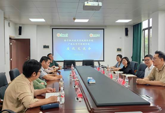 5月17日下午,南宁职业技术学院国际学院一行到我院调研,学院党委书记莫柏林以及东南亚语系教师代表参加本次座谈会。
