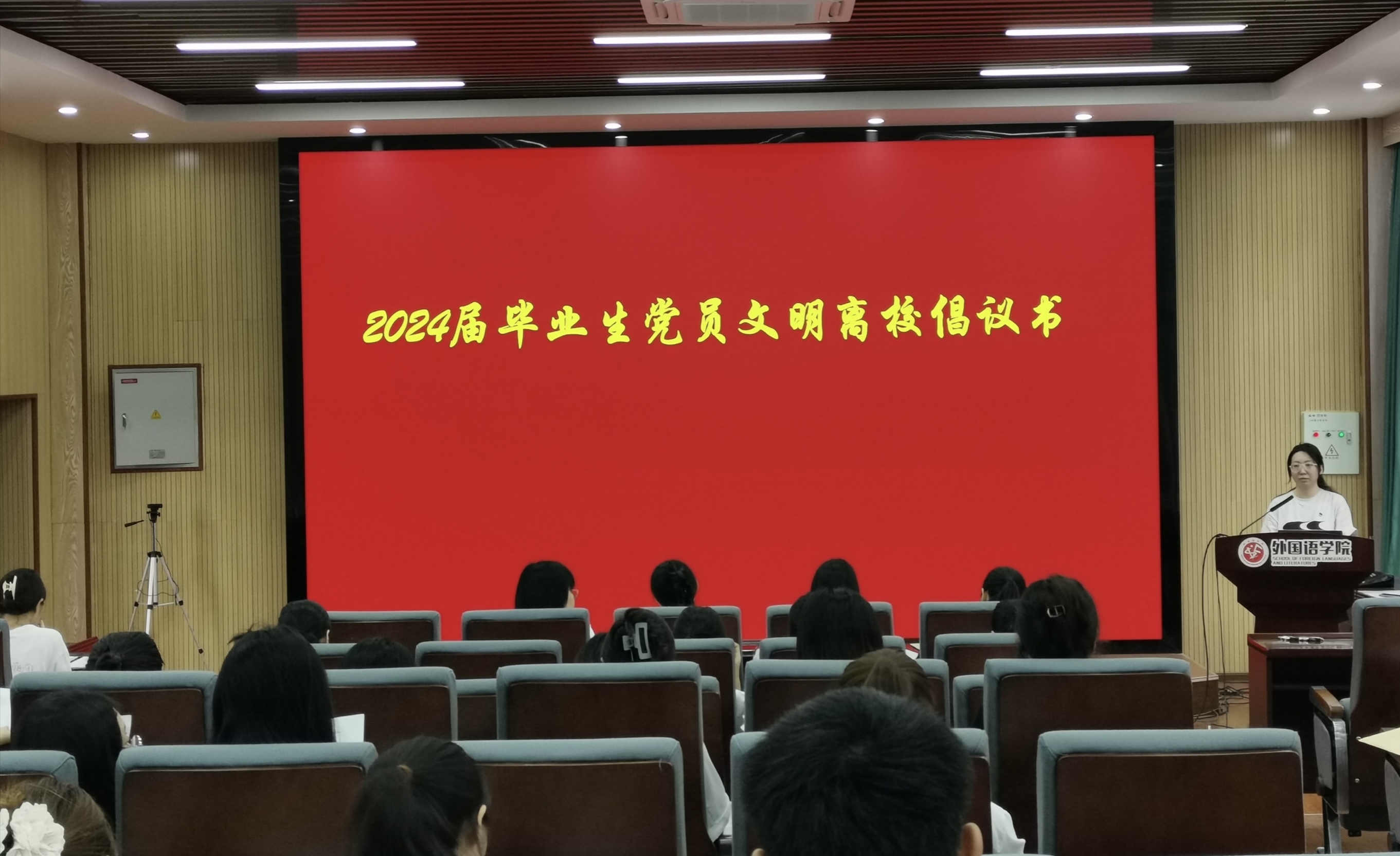 (毕业生党员代表张睿原宣读《2024届毕业生党员文明离校倡议书》)