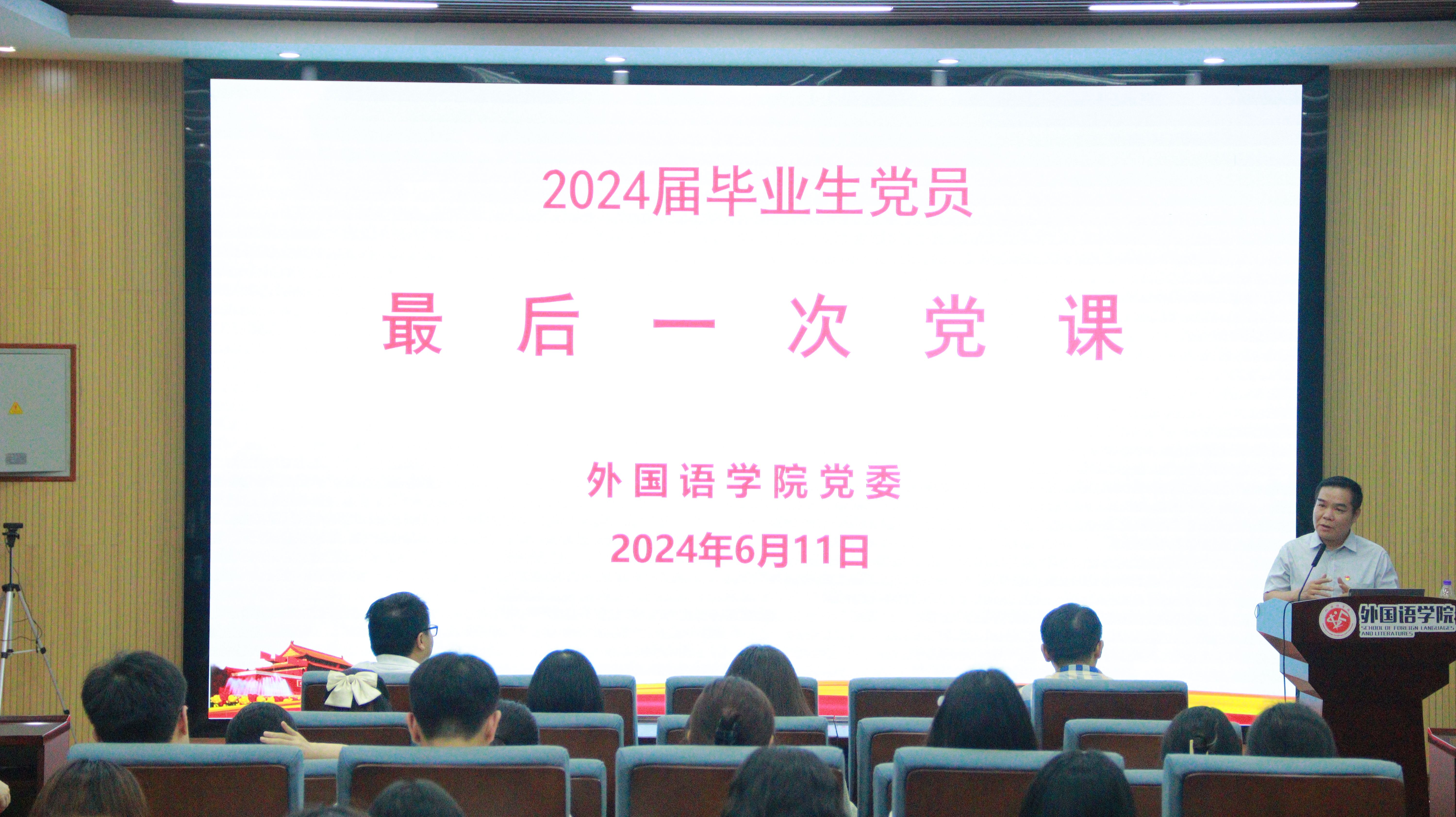 6月11日下午,院党委书记莫柏林在融通厅为全体毕业生党员们上离校前最后一次党课。最后一次党课由党性教育和党纪教育两个部分组成,从集体观看《青春》和《何以青春》两则宣传短片中开讲。