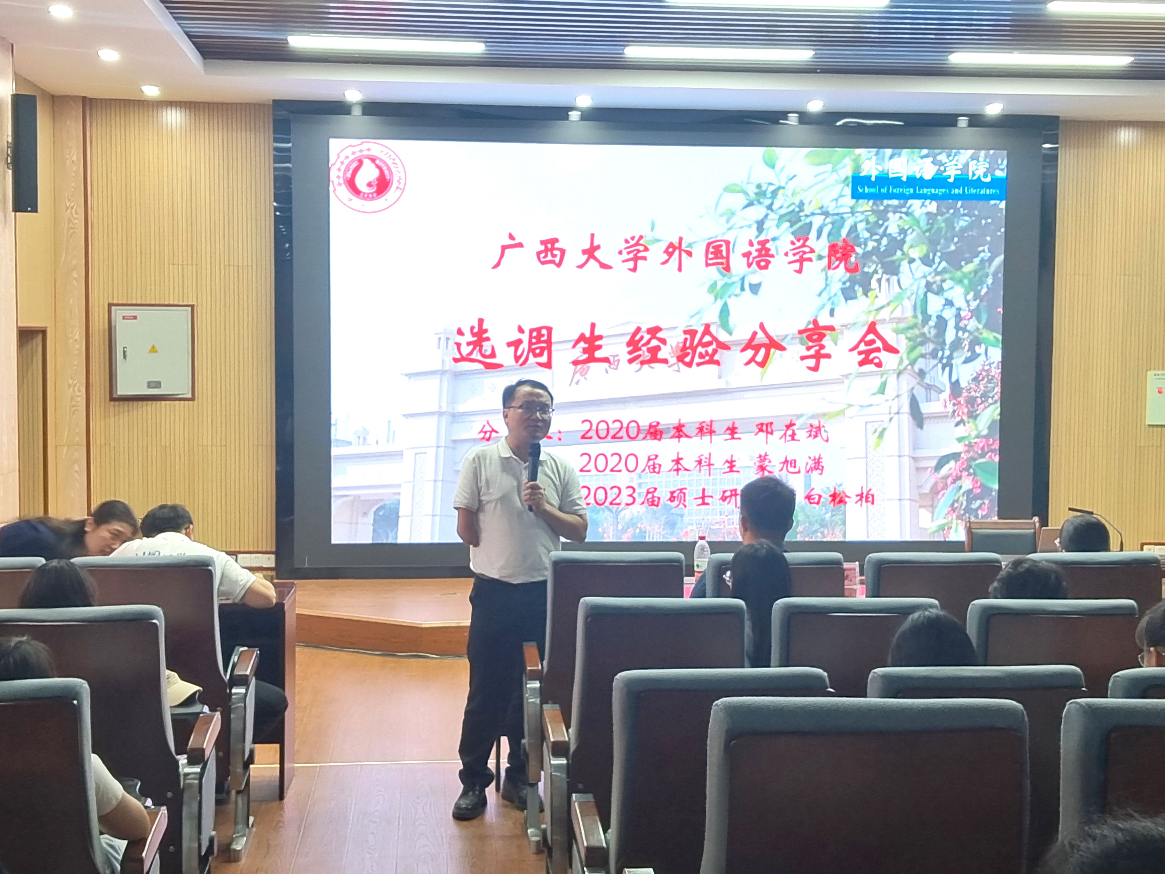 为落实学校党委《ok138cn太阳集团529选调生“君武青苗”行动方案》文件精神,助力ok138太阳集团古天乐学子科学规划选调生备考路径,深入了解选调岗位职责,并进一步加强校友与学院之间的紧密联系。11月15日下午,学院在融通厅举办了“ok138太阳集团古天乐选调生经验分享会”,我院白松柏、蒙旭满、邓在斌目前在选调生岗位上工作的三位校友受邀出席,学院党委副书记程锐老师、团委书记陈星宇老师、辅导员柯威老师和100多名在校学生代表参加了活动。