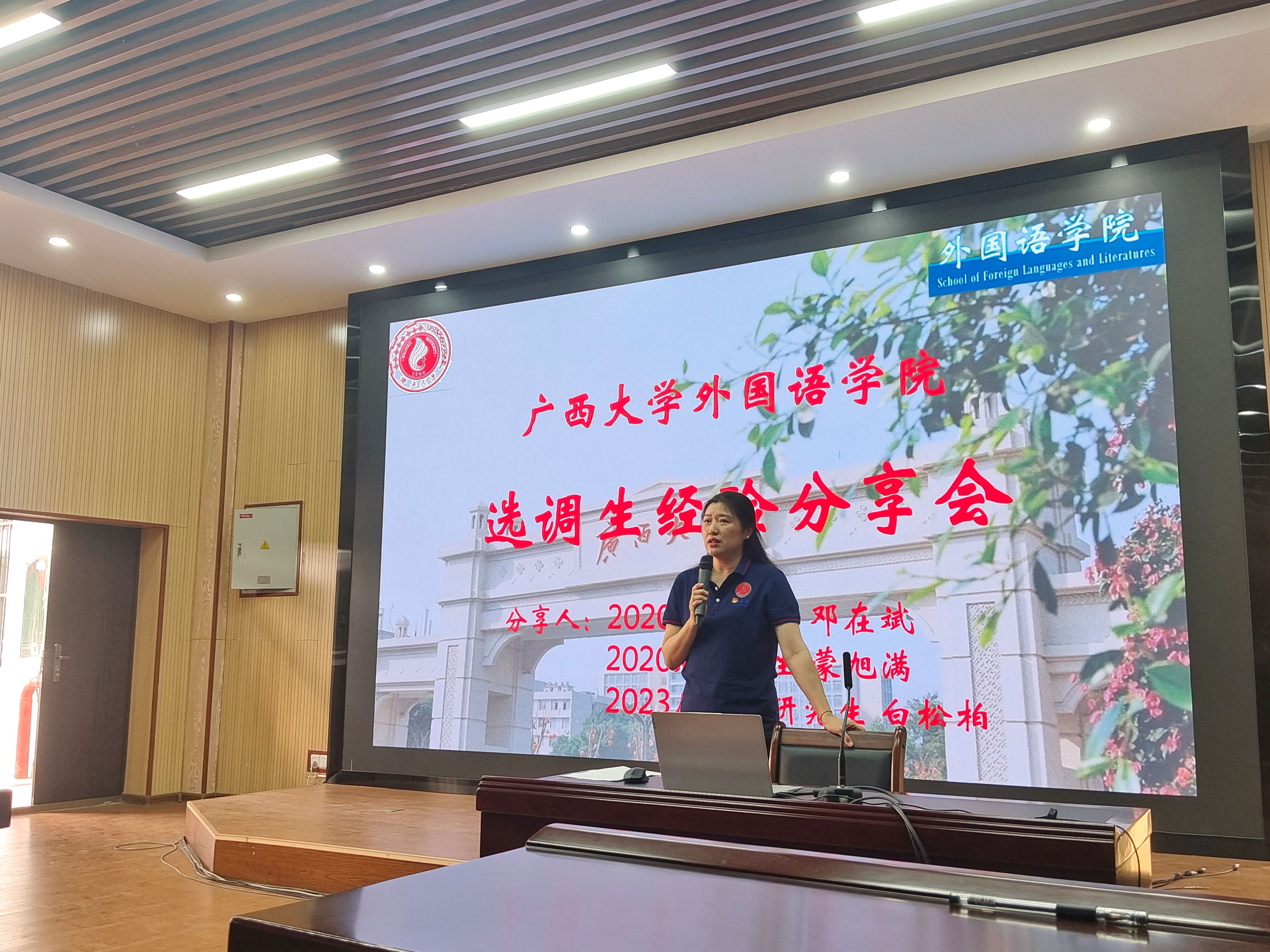 蒙旭满是我院2016级泰语专业本科生,2020年通过定向ok138cn太阳集团529选调生的选拔,现任中共龙州县委员会组织部一级科员。她以选调生考试的笔试与面试真题,向在场的同学们直观展示了考试的真实面貌,为大家备考提供了借鉴和参考。同时,她结合个人工作经历,讲述了选调生工作的日常。最后,她鼓励同学们把基层作为实现自己“为天地立心,为生民立命”的理想舞台,希望大家能为壮美广西贡献自己的力量。