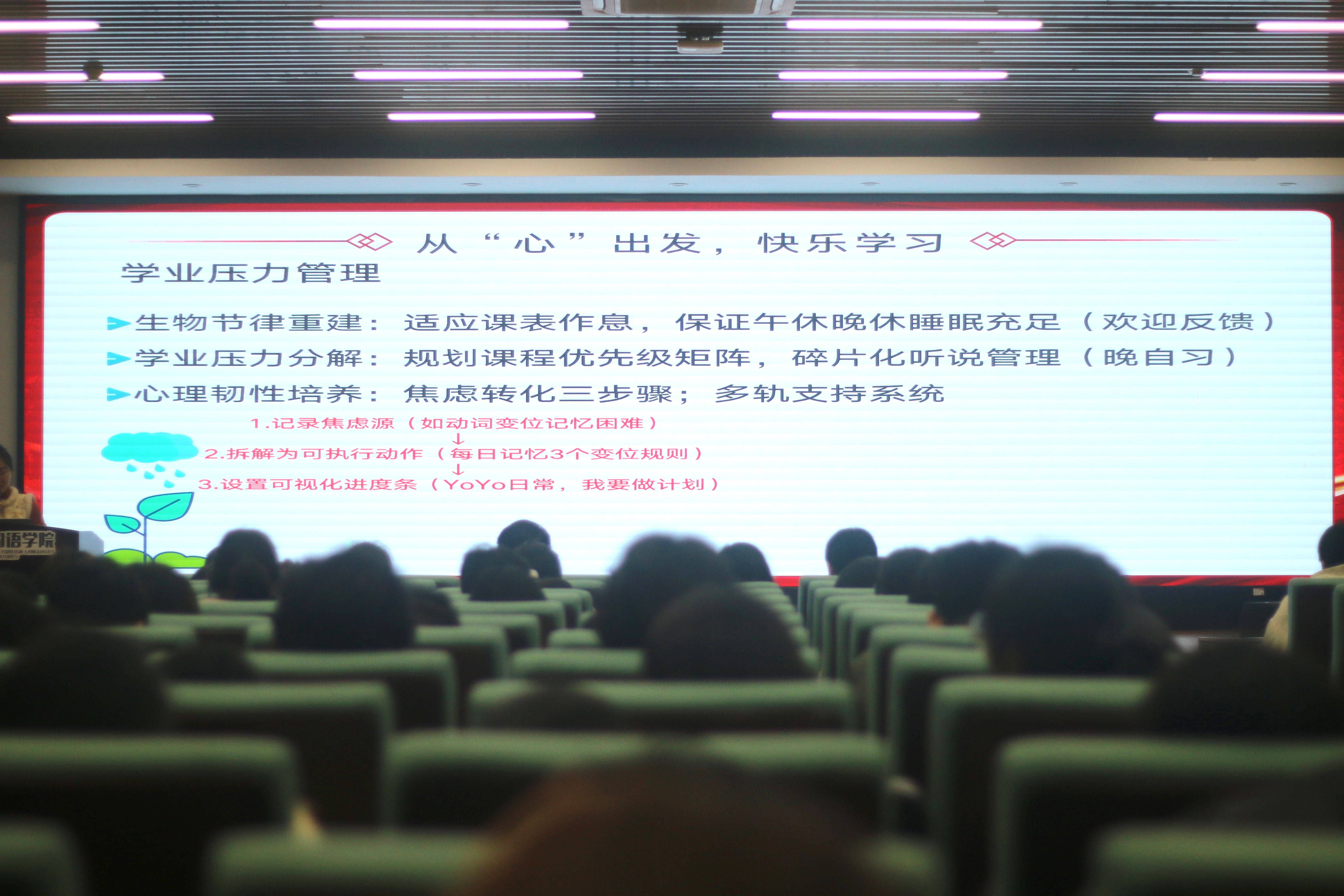 学院党委副书记程锐以“守牢安全底线 锚定奋斗坐标”为题开讲第一课。他强调,新时代外语学子要始终把“政治安全”摆在首位,坚持用习近平新时代中国特色社会主义思想武装头脑,在跨文化交流中增强政治敏锐性,坚决抵制错误思潮渗透,严守“教育与宗教相分离”原则。针对学业职业规划,他提出外语人需要培养“大格局”,抓牢“小细节”,引导学生将个人理想融入服务国家战略需求。