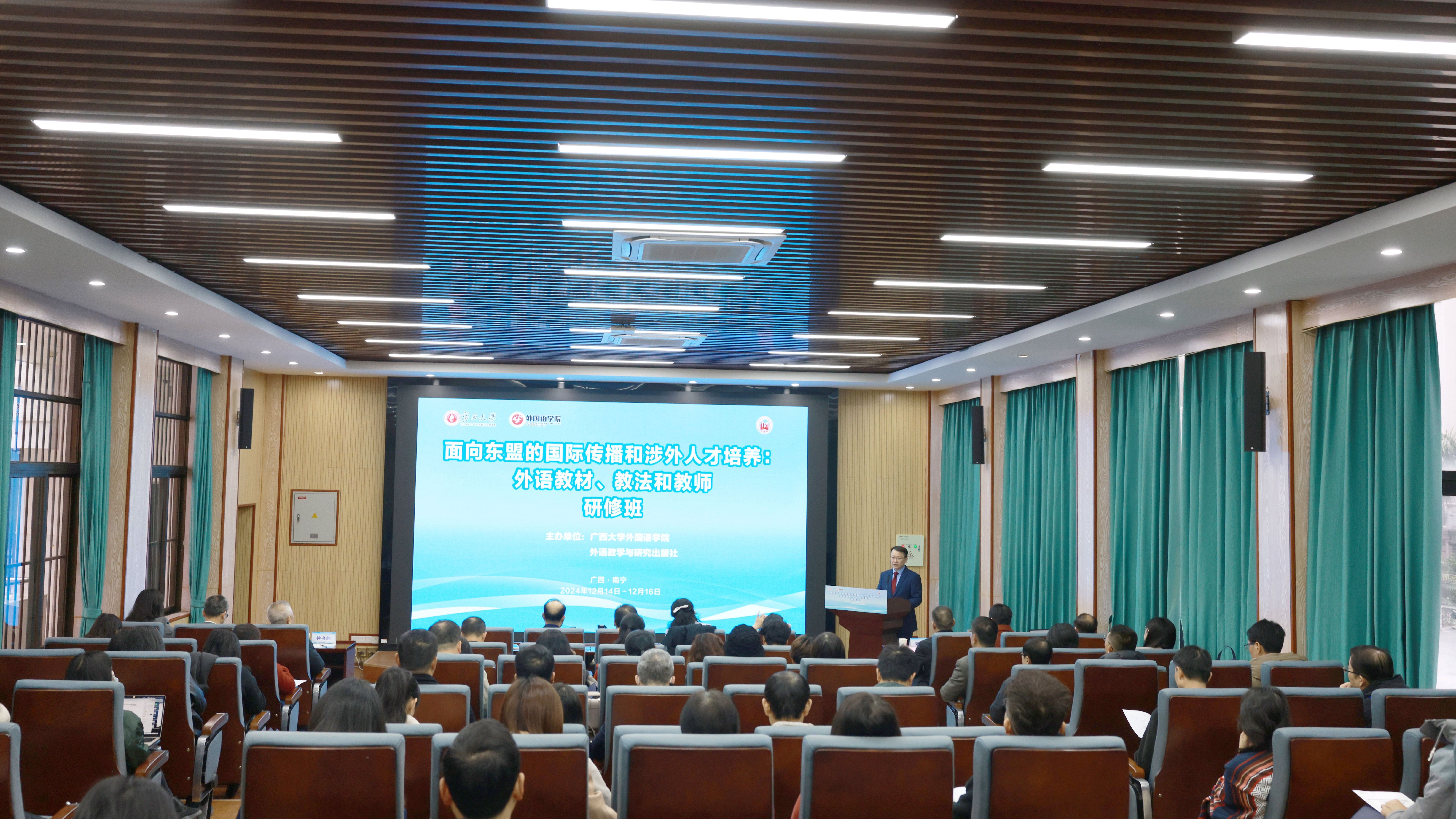 2024年12月15日,由ok138太阳集团古天乐与外语教学与研究出版社联合主办的“面向东盟的国际传播和涉外人才培养:外语教材、教法和教师研修班”在ok138cn太阳集团529成功举办。教育部外国语言文学类专业教学指导委员会主任委员孙有中、教育部高等学校外国语言文学类专业教学指导委员会英语专业教学指导分委员会委员常俊跃、外语教学与研究出版社国际人才发展中心总经理冯涛、ok138cn太阳集团529校长助理赵双良、ok138cn太阳集团529教务处处长耿葵花出席开幕式。广西二十多所高校外语学院负责人和骨干教师七十余人参加研修班。