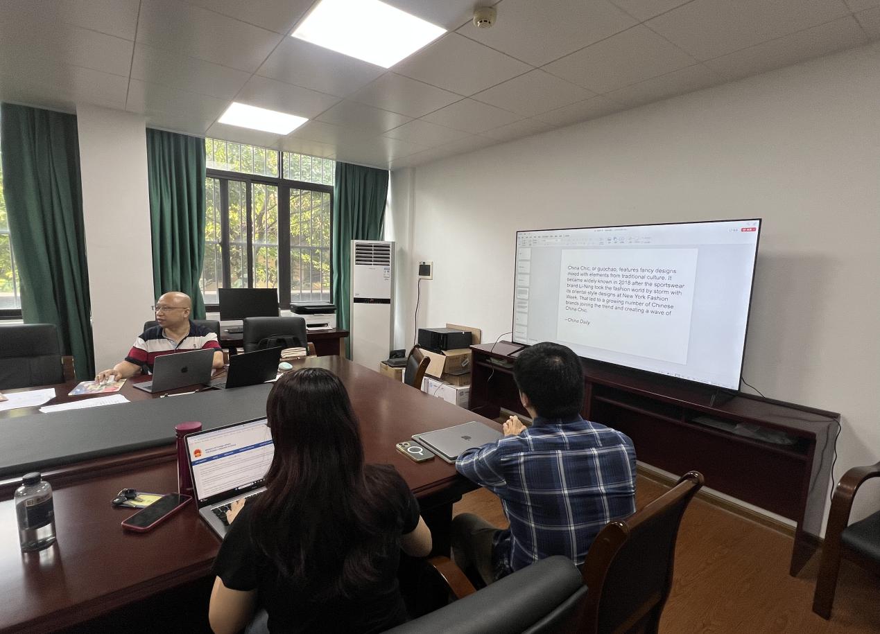 英文系莫晨莉副教授汇报了她暑期参加第二期“三进”工作与国际传播能力建设研修班的学习收获,重点介绍了外文出版社译审黄长奇译审提出的新时代译好中国故事的“四种意识”,即政治责任意识、国情文化意识、跨文化传播意识和技术赋能意识。她认为,这些内容有助于提升教师的时政话语翻译教学水平和国际传播能力。英文系邵青副教授以《英语演讲》课程为例,分享了如何通过外媒对我国奥运选手潘展乐的不实报道案例,将话语反制融入课程思政。他详细介绍了该案例的教学设计及成效,强调课程思政应与专业课程紧密结合,实现相互融合。翻译系韦乔钟老师以“国潮”主题的《汉英交替传译》课程为例,展示了通过口译课程讲好中国故事、传播中华文化的教学实践,为课程思政与翻译教学的有机融合提供了宝贵经验。同时,韦老师还分享了国际人才英语考试的相关信息。