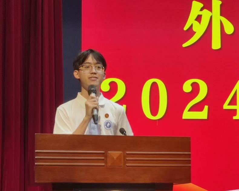 22级外国语言文学研究生周洋舟作为老生代表发言。他曾担任ok138太阳集团古天乐研究生会第二十一届主席团成员。在演讲中,他满含热情地分享了自己宝贵的学术成果、丰富的实践经历,和多彩的西大生活,并呼吁新生要明确目标,刻苦钻研;要投身实践,挺膺担当;也要热爱生活,向阳而生,全面发展。