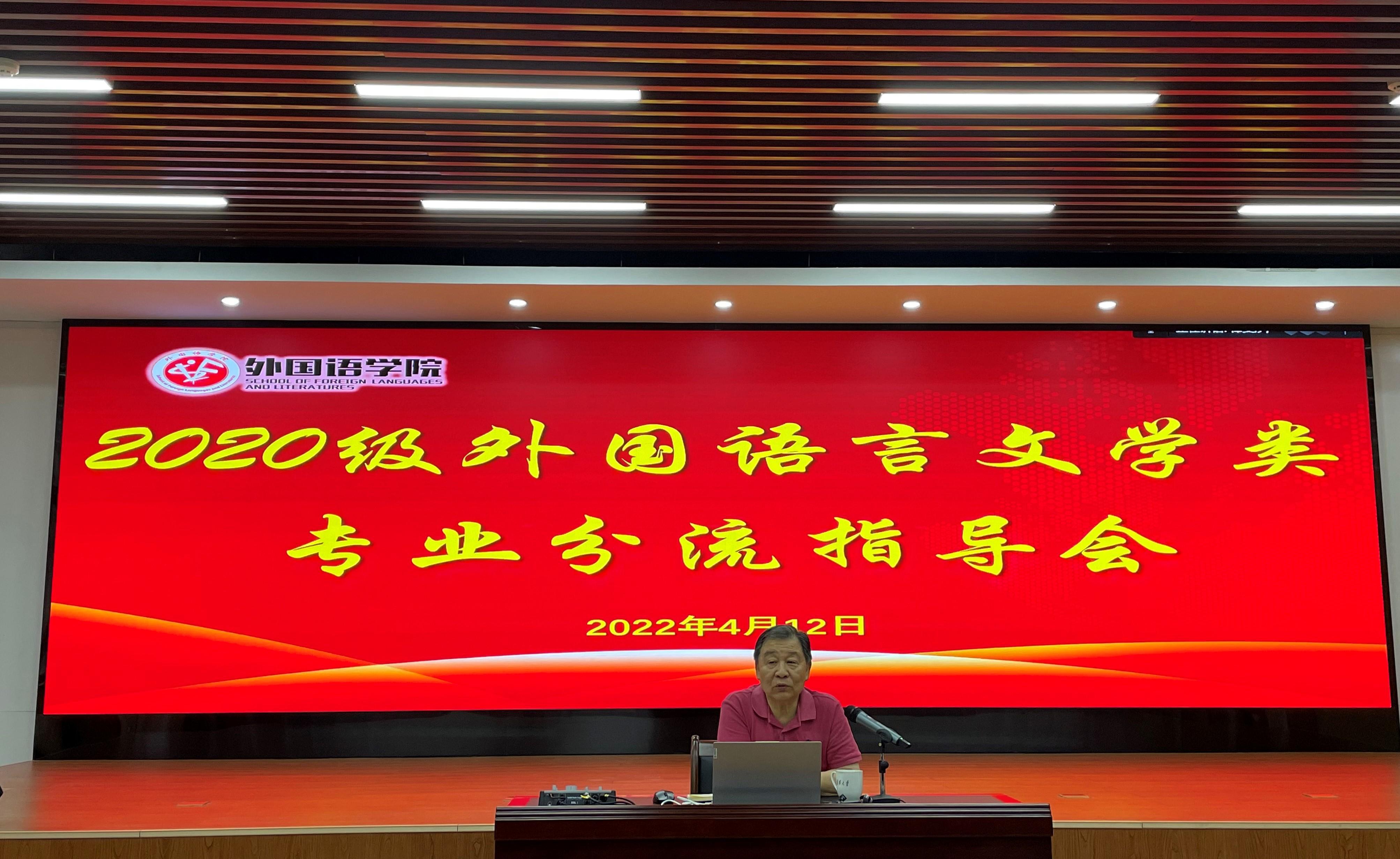 4月12日下午,ok138太阳集团古天乐以线下线上相结合的方式召开2020级外国语言文学类专业分流指导会。ok138太阳集团古天乐院长罗选民教授、教学副院长叶萍教授、英文系副主任李亮副教授、翻译系副主任林秋明副教授、专业教学秘书俸雯汐以及部分学生代表参加了此次会议。