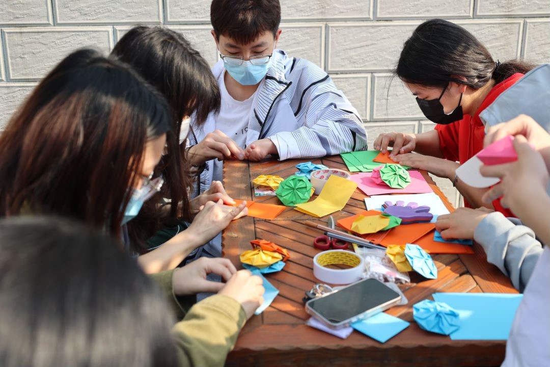 在众多活动项目中,最受欢迎的项目是心愿绣球制作,该活动由21级日语笔译班承办。该班级的卢宏迪同学惊叹道,这个项目的火爆程度超出了她的预期。让参与者亲自动手使体验感大大增加,再加上制作完成的绣球色彩丰富、精致美丽,极具壮族民族文化特色,这也许就是吸引众多同学前来参与的原因。参与活动的何佳易同学在完成了绣球制作后分享了她的感受,她认为,“折纸绣球的制作过程虽然比较简单,但它将我国传统的折纸艺术和三月三民族文化有机结合,利于我们文化的传承。”