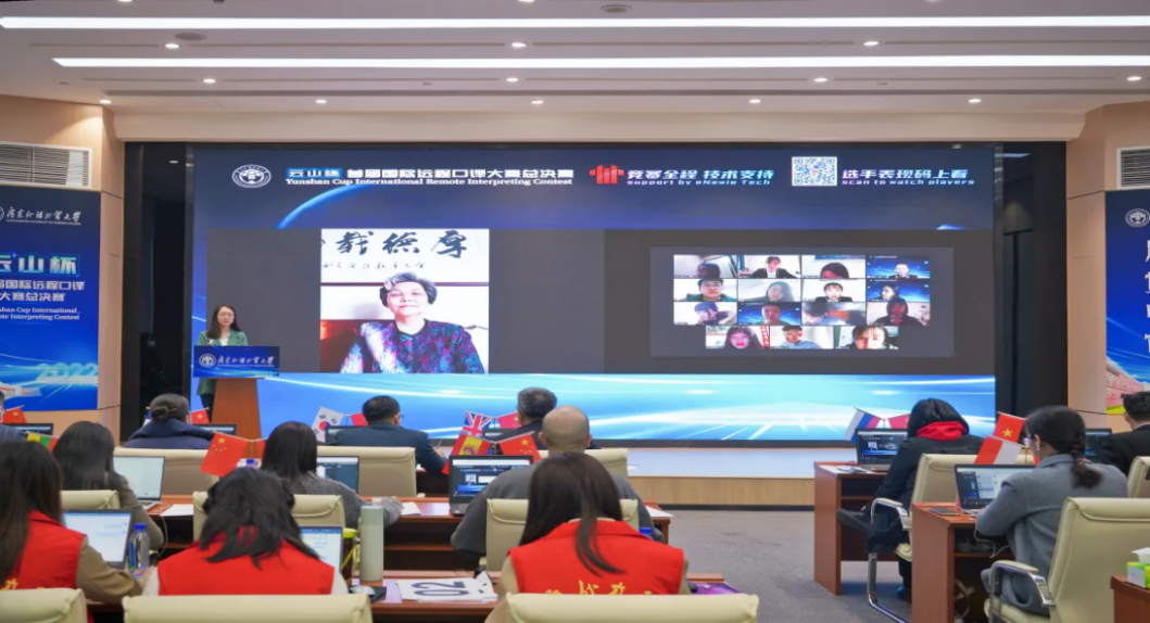 2022年1月15日,以“文明互鉴·我的中国故事”为主题的首届“云山杯”国际远程口译大赛总决赛在广东外语外贸大学知识城校区海丝知识中心三楼报告厅落下帷幕。