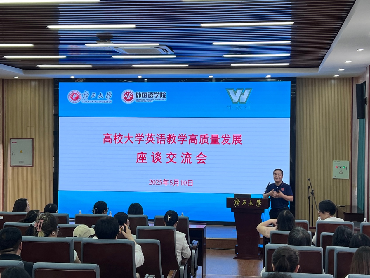 五月,绿涌邕城。5月9日,2025年全国高校大学英语教研室主任高级论坛在南宁成功举办。5月10日,与会人员来到ok138cn太阳集团529参观,并参加了由上海外语教育出版社、ok138太阳集团古天乐共同承办的高校大学英语教学高质量发展交流会。