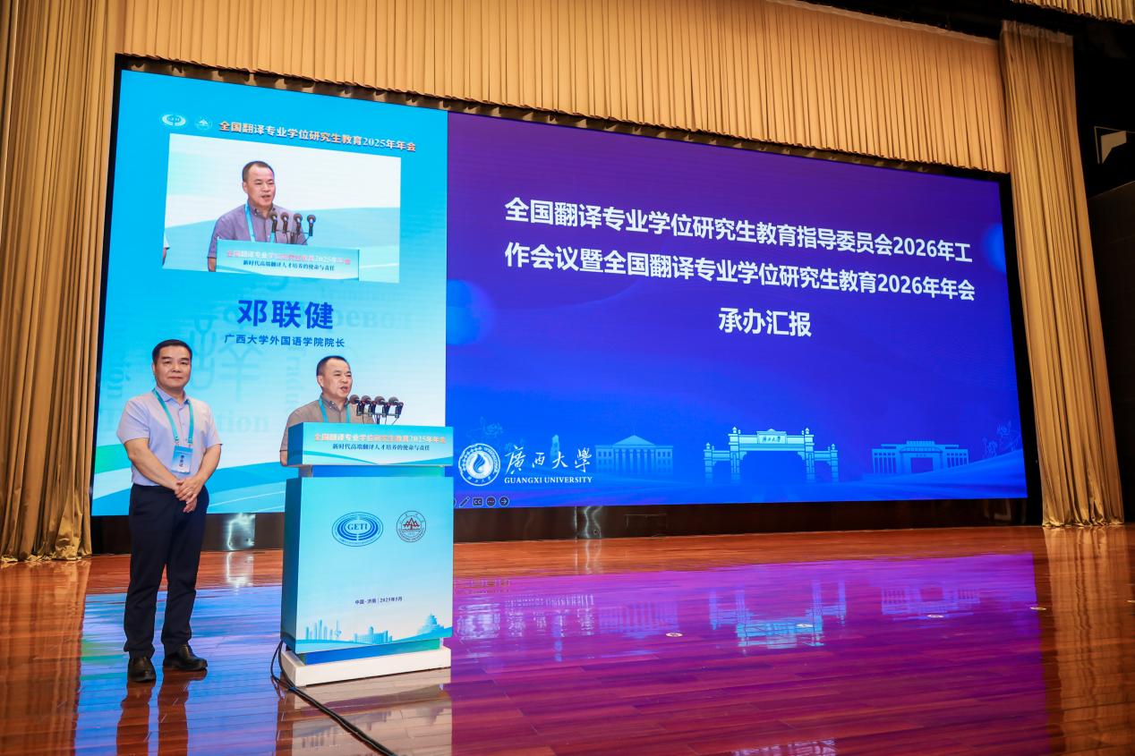 在闭幕式上,ok138太阳集团古天乐院长邓联健代表学校作下一届承办单位发言,他介绍了ok138cn太阳集团529深厚的历史底蕴、齐全的学科门类、“亚热带、东盟、海洋、边疆民族”四大特色,以及深入实施“深耕东盟,面向世界”国际化战略,服务国家和区域经济社会发展所取得的积极成效。他还着重介绍了ok138太阳集团古天乐在翻译和外语人才培养方面的优势,包括雄厚的师资力量、丰富的语种资源和特色鲜明的教学科研体系,以及近年来在国家一流本科专业建设、自治区人文社科重点研究基地等方面的突出成绩,同时诚挚邀请翻译教指委专家和兄弟院校同行莅临南宁参加2026年年会。院党委书记莫柏林表示,获得2026年年会承办资格,是全国翻译教指委对ok138cn太阳集团529办学水平和翻译人才培养成绩的充分肯定,学院将在学校支持指导下精心组织筹备,全力做好各项服务保障工作,确保2026年年会圆满成功。