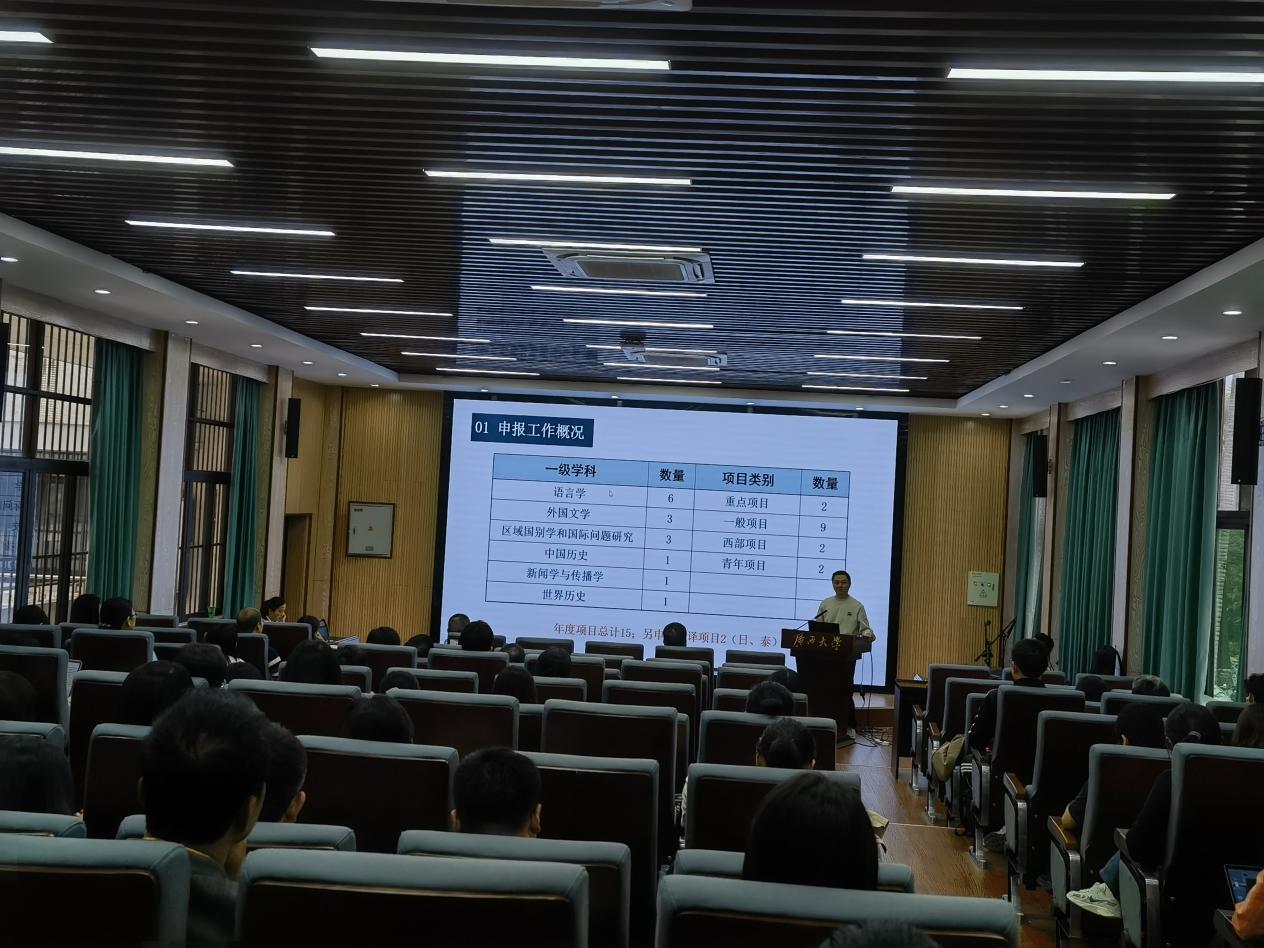 10月21日下午,ok138太阳集团古天乐在学院融通报告厅召开2026年度国家社会科学基金项目申报动员会。彭程副院长汇报总结国社申报情况,邓联健院长作动员讲话,学院全体教职工参加会议。