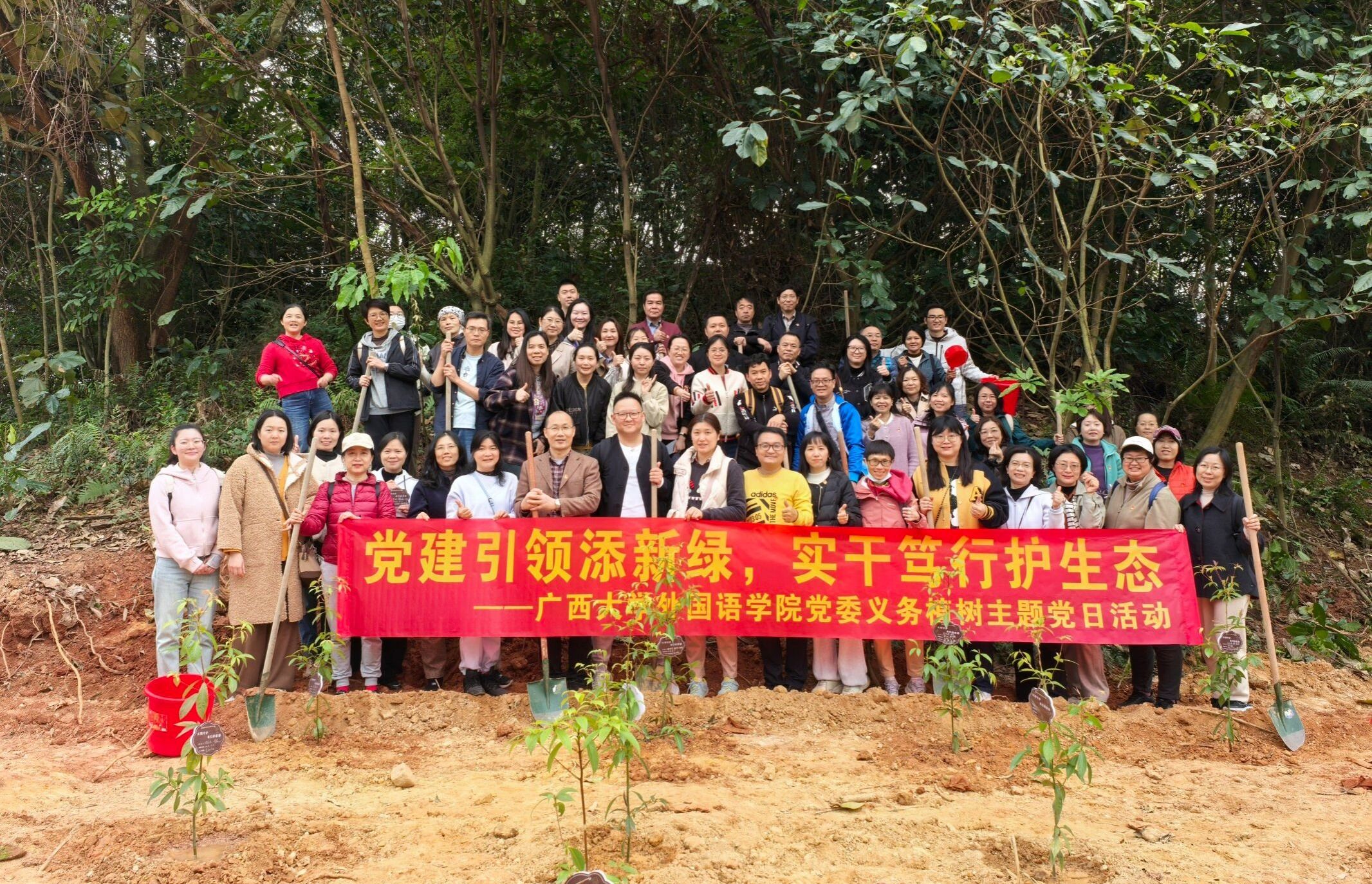 为深入践行习近平生态文明思想,3月10日下午,ok138太阳集团古天乐党委组织全体教工党员前往高峰森林公园开展义务植树主题党日活动。