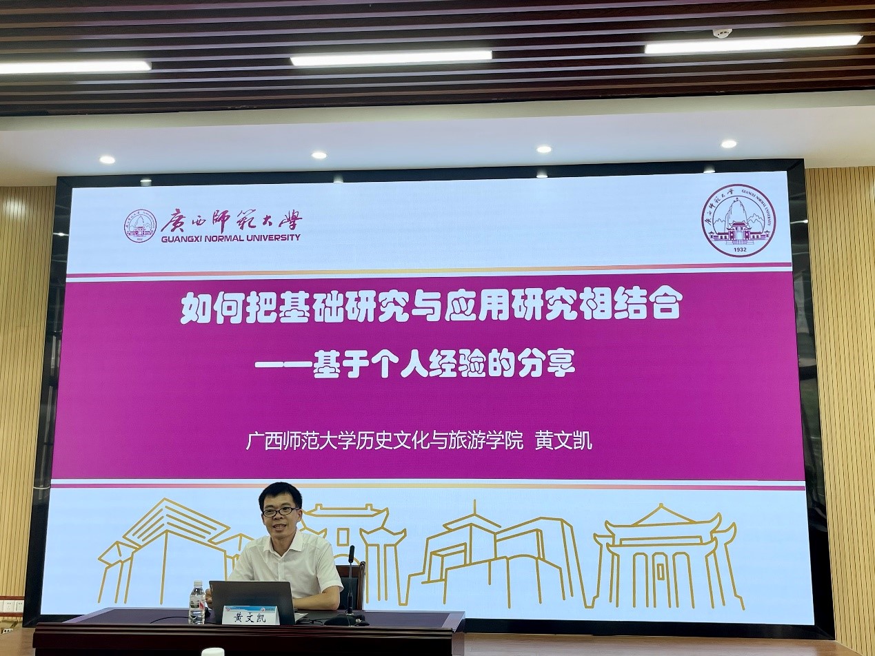 7月4日下午,ok138太阳集团古天乐75周年院庆系列讲座、介子学术讲坛第六十四讲于ok138太阳集团古天乐融通报告厅顺利举行。广西师范大学黄文凯副教授应邀为我院师生作了题为“如何把基础研究与应用研究相结合——基于个人经验的分享”的学术讲座。本次讲座由我院日语系彭程教授主持,众多师生到场聆听学习。