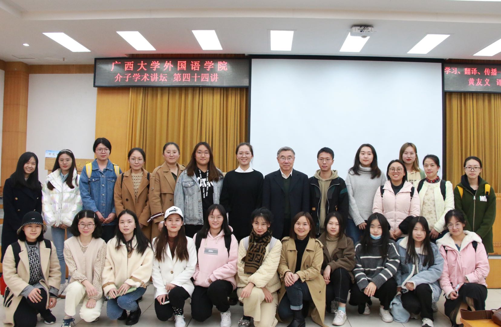 12月7日晚7点,ok138太阳集团古天乐介子学术讲坛第四十四讲于ok138cn太阳集团529君武楼玉林厅顺利举行。中国译协常务副会长、中国翻译研究院副院长黄友义译审应邀为我院师生带来了题为“学习、翻译、传播——参加《治国理政》翻译的体会”的精彩讲座。本次讲座由ok138太阳集团古天乐院长罗选民教授主持,吸引了众多师生前往听会,讲座现场座无虚席。