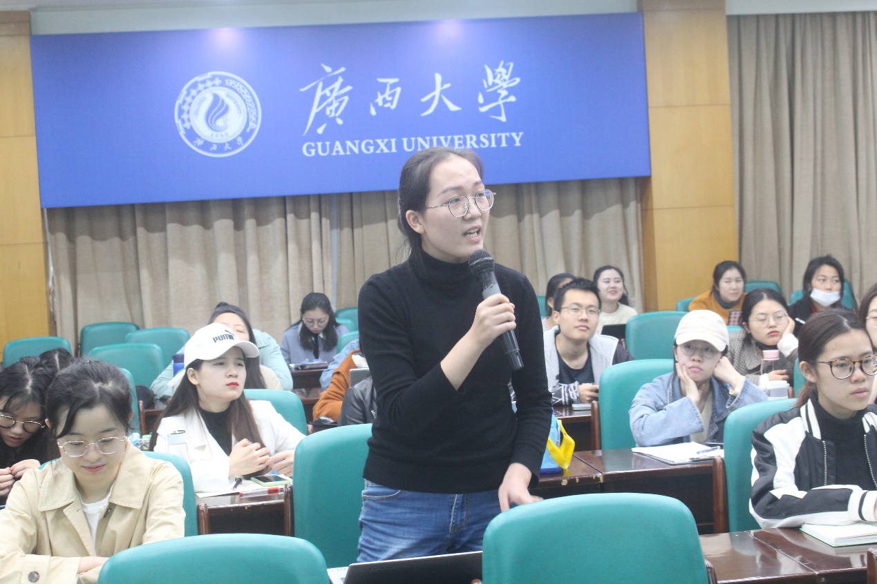 在交流互动环节,在场师生抓住机会,积极提问。陈教授不止阐明了语用学的专业知识,还详细说明了语用学适合的研究方法,告诉我们要自下而上,从大量具体的语言使用现象之中寻找共通的规律。“无处不学问”,陈教授告诉我们,每句话都有研究价值,要培养兴趣,注重观察。