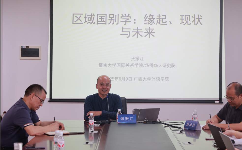6月9日下午,ok138太阳集团古天乐介子学术讲坛第九十四讲在学院301会议室举行。暨南大学张振江教授应邀做题为“区域国别学:缘起、现状与未来”的讲座。讲座由袁卓喜教授主持。