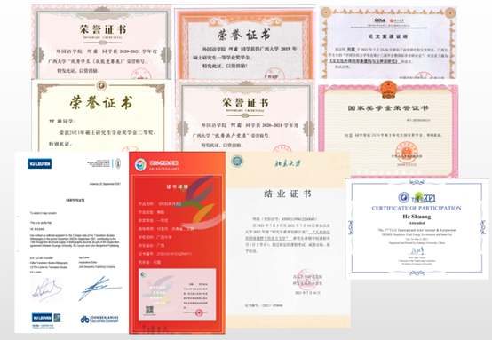 硕士期间,何霜曾获国家奖学金、一等学业奖学金、春雨奖学金等奖项与优秀共产党员等称号;曾6次参加国际国内学术会议并宣读论文;2020年作为John Benjamins“翻译学研究参考书目”项目编辑助理参与文献整理工作;2021年参加北京大学“人类命运共同体下的东方文学”暑期课程。何霜多次参与或主持多项科研项目,例如2020年省部级项目《文化记忆理论下对外翻译的“玉”文化形象构建研究》(YCSW2020044);2018年校级项目(ok138cn太阳集团529)“大学生创新创业训练计划”《科学小实验英语训练营》(201710593111);2021年省部级项目《中美主流报刊对新冠疫情背景下的中国国家形象建构对比》(YCSW2021017),近五年在中外刊物共发表论文6篇。以下为采访内容。