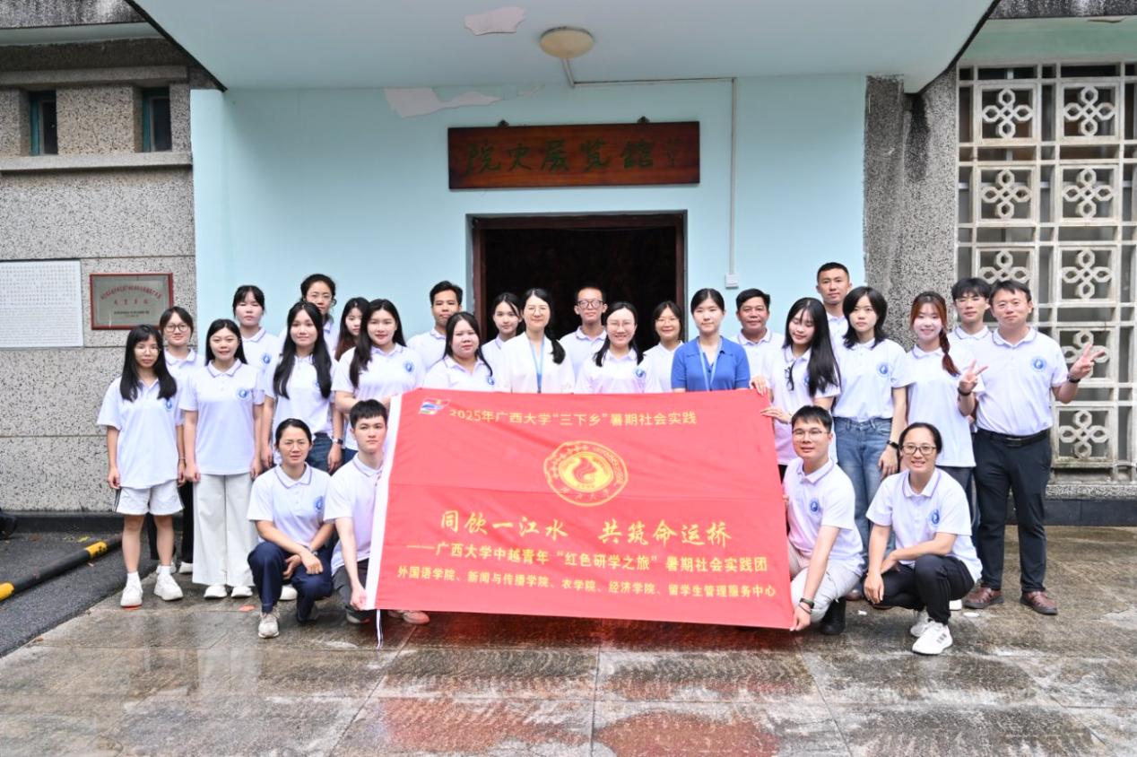 为深入贯彻习近平总书记关于邀请越南青年赴华开展“红色研学之旅”的重要指示精神,7月22日至23日,ok138cn太阳集团529“同饮一江水,共筑命运桥”中越青年“红色研学之旅”暑期社会实践团走进桂林开展第二站研学活动。中越青年们在一座座纪念场馆中回望历史,于一场场真诚交流中共情友谊,在一次次跨越代际的讲述中续写传承,用脚步丈量中越情谊的厚度,以行动点燃“命运共同体”的青春薪火。