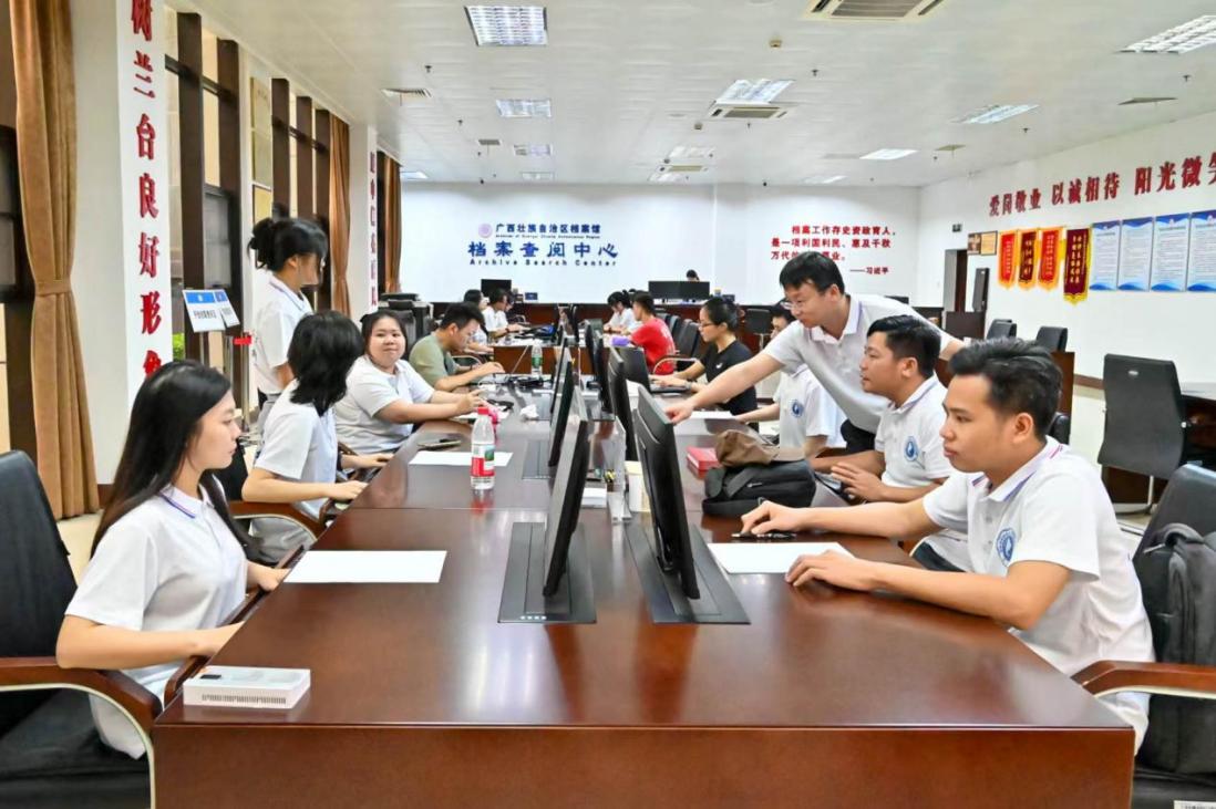 7月21日上午,实践团首站走进广西壮族自治区档案馆,在馆方工作人员的引导下,系统查阅了中越友好交流及胡志明在广西的历史档案,深入了解两国在革命与建设时期并肩携手的深厚情谊。