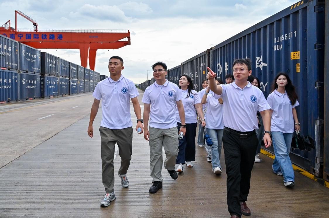 当天下午,实践团还探访了广西南宁国际铁路港,在繁忙的中越贸易往来实景中,切身感受两国友谊的脉动。