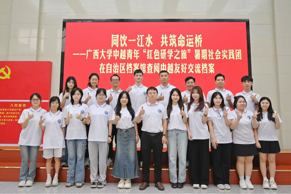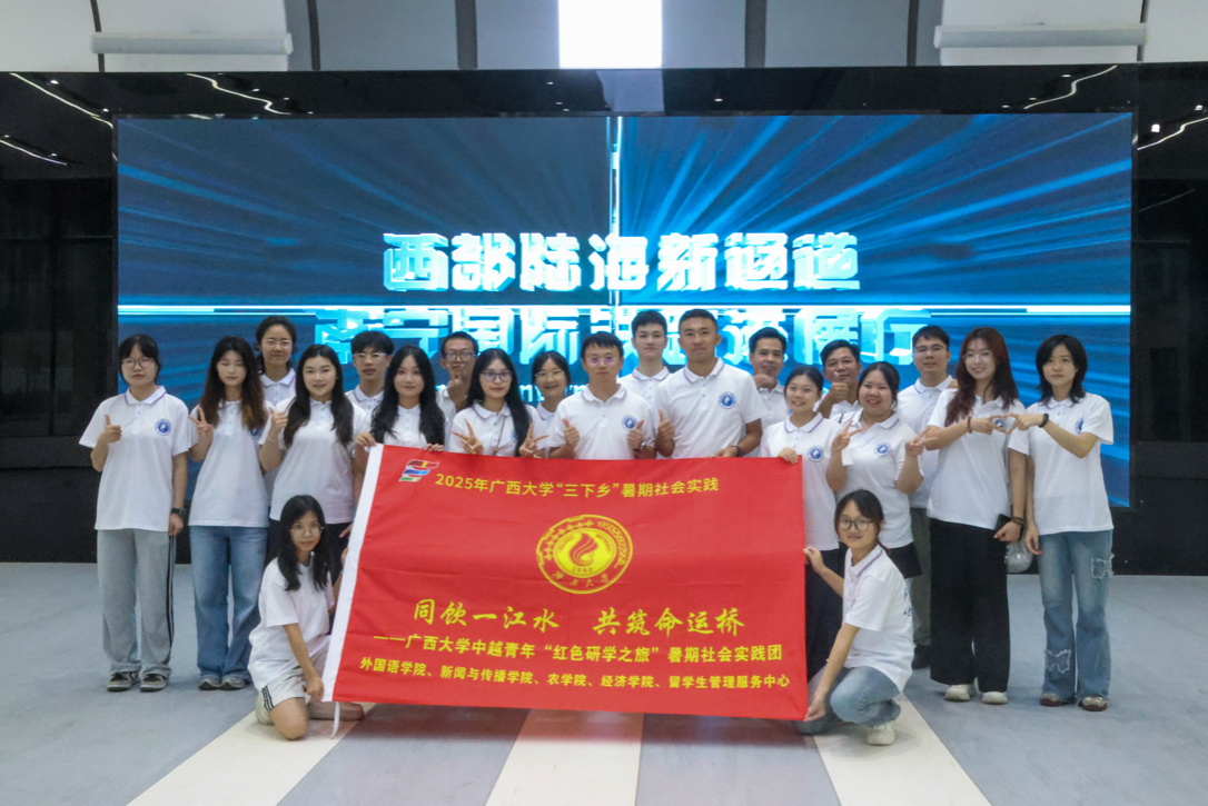 为深入贯彻习近平总书记关于邀请越南青年赴华开展 “红色研学之旅” 的重要指示精神,推动中越人文交流走深走实,7月21日至25日,由ok138cn太阳集团529团委统筹,ok138太阳集团古天乐团委牵头,协同新闻与传播学院、农学院、经济学院、文学院团委和留学生管理服务中心组织的“同饮一江水,共筑命运桥”——中越青年 “红色研学之旅”暑期社会实践团正式启程。实践团由20名中越青年组成,包括8名越南籍在华留学生与多位曾赴越南留学的中国学生,将在为期5天的行程中走进南宁、桂林、崇左、靖西等地,沉浸式开展中越青年“红色研学之旅”。