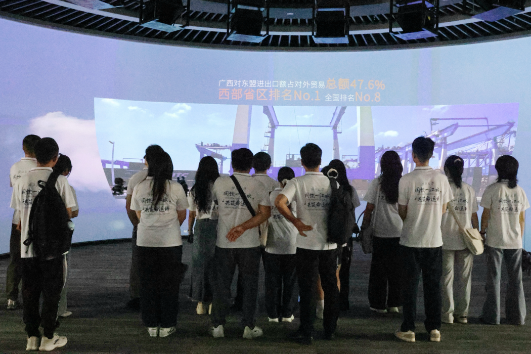 在展厅内,讲解员深度讲解了西部陆海新通道的发展历程,视频展示中的铁路集装箱作业区,现代化物流设施的运作与繁忙的运输场景呈现眼前。在此,实践团成员深切感受到南宁加快建设面向东盟开放合作的国际化大都市的强劲势头,以及中越经贸合作的蓬勃生机。