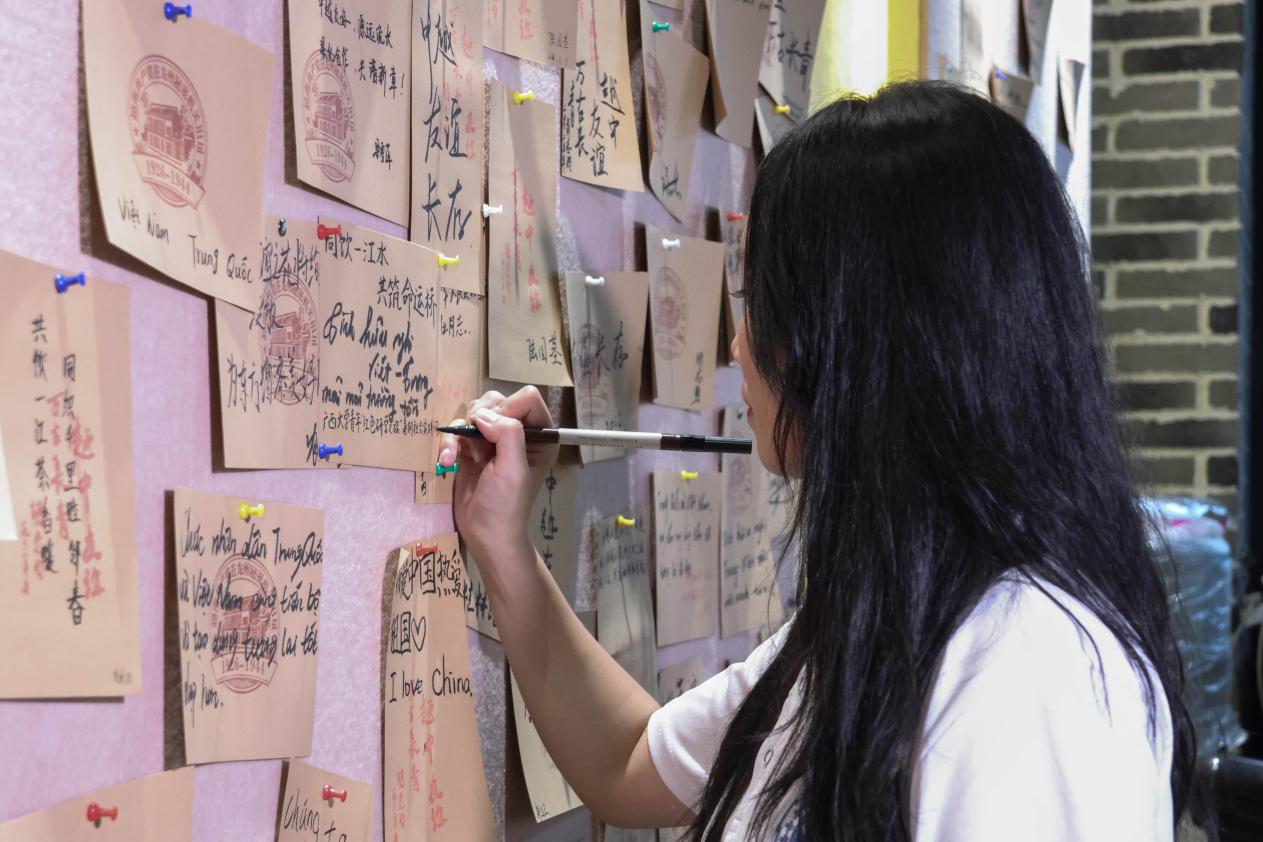 实践团成员在留言墙写下对中越友谊的祝福