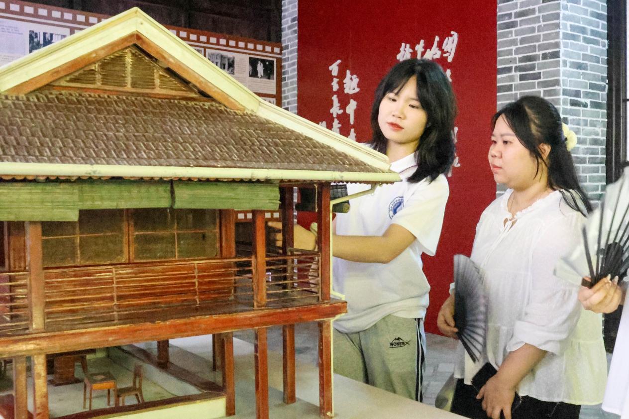 实践团成员在龙州秘密机关旧址胡志明主席故居模型处交流