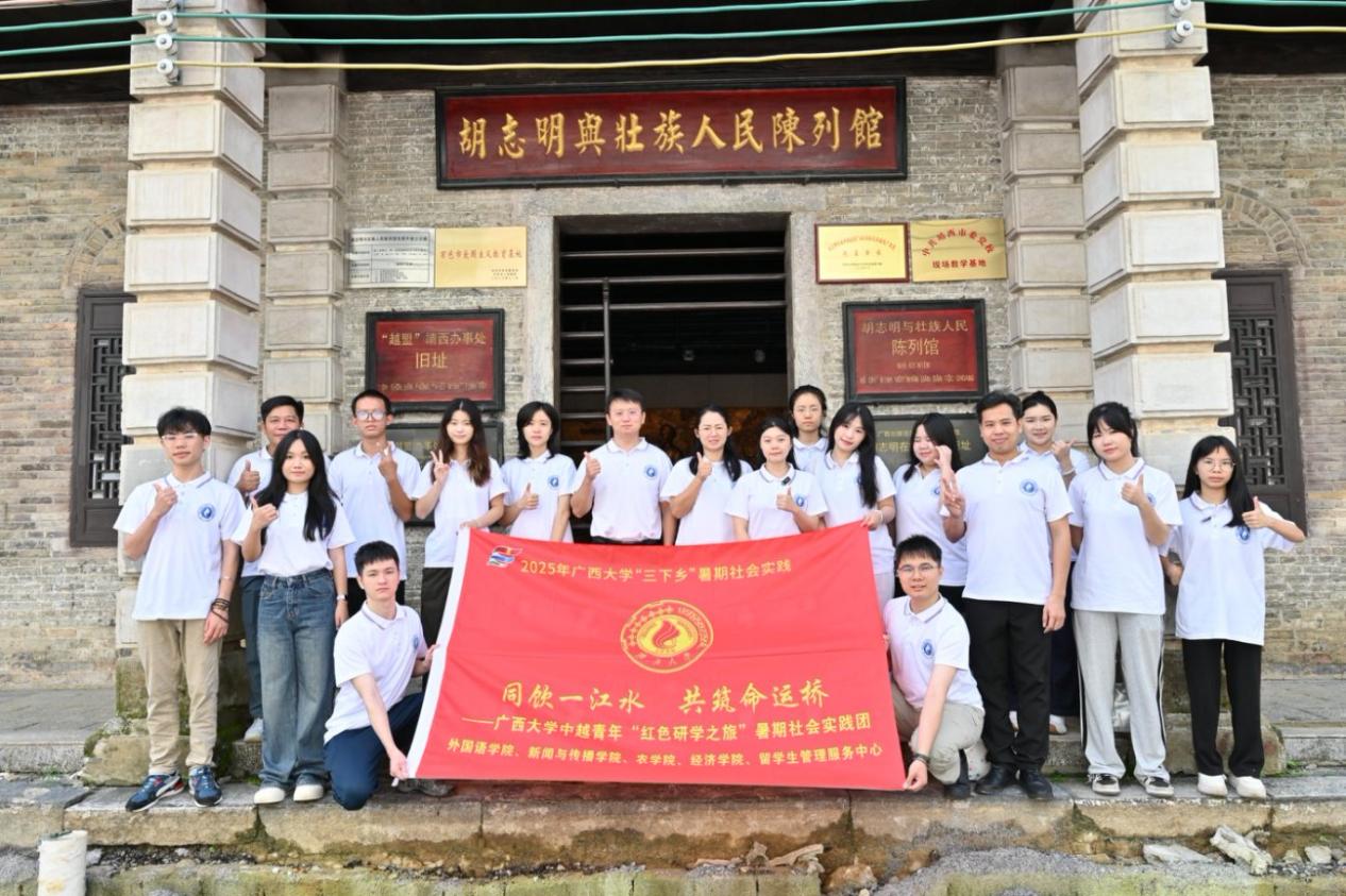 当天上午,实践团走进靖西“越盟”办事处(胡志明与壮族人民陈列馆)。这座修缮于2015年的场馆,完整保留了胡志明1940年-1944年在中国开展革命活动时的办公场景。馆内陈列着近300幅珍贵图片以及步枪子弹、旧式煤油灯等文物实物 。这里不仅是胡志明等革命者开展活动的关键据点,更是中越革命友谊以及胡志明与中国人民深厚感情的有力见证。如今,它已成为中越跨境红色旅游的热门打卡地,同时也是中越青少年传承友谊传统的重要教育场所 。