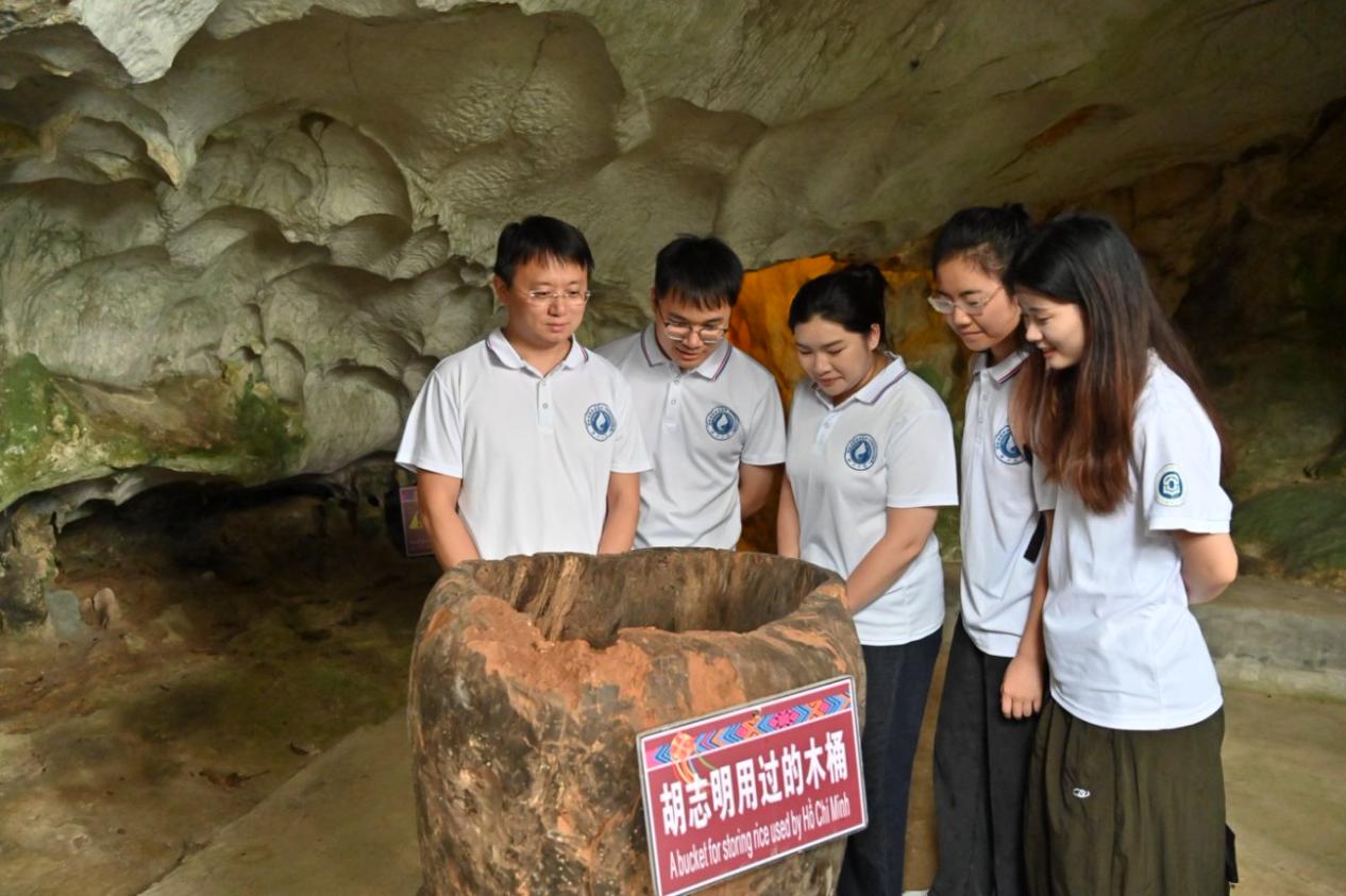 7月25日,实践团来到靖西“越盟”办事处和吞盘胡志明洞,实地探访了胡志明主席在华革命的足迹,感悟中越两国人民在革命斗争中结下的深厚情谊。